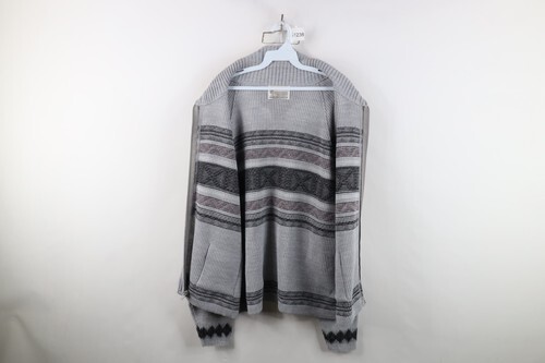 Vtg 70s Streetwear Mens XL Fair Isle Ribbed Knit Full Zip Cardigan Sweater USA