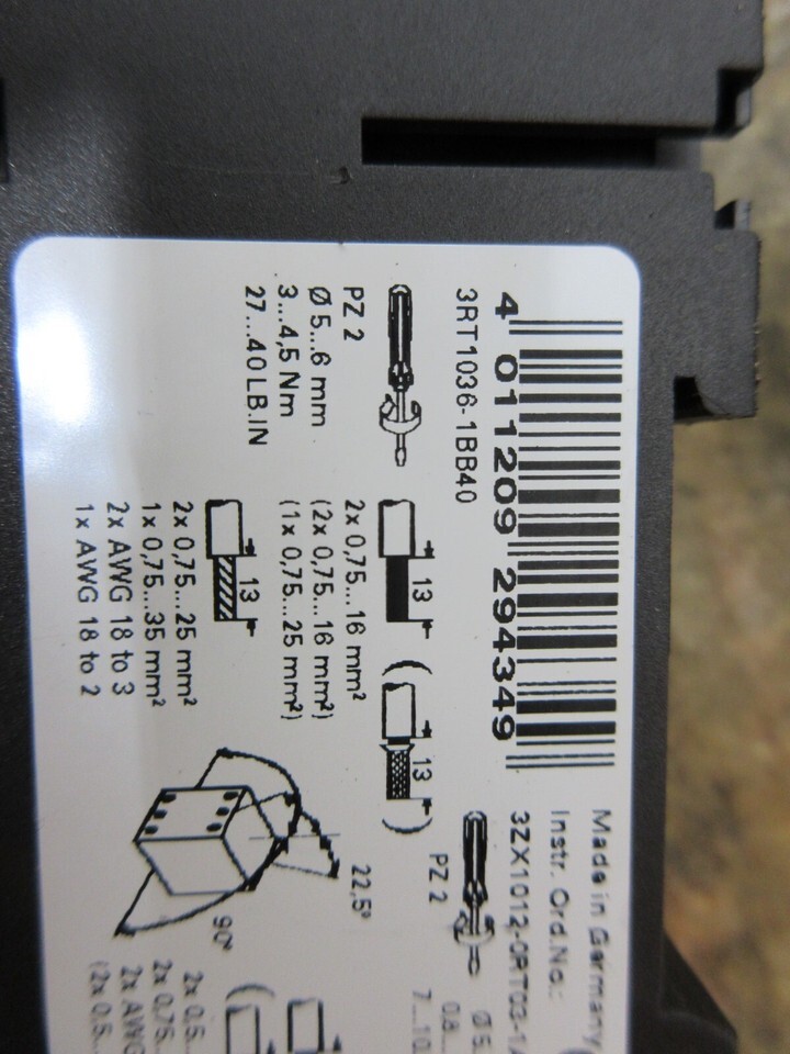 SIEMENS CONTACTOR 3RT1036-1B 0 LO000709 L0000709 E04 3RT1036-1BB40 CNC EACH 1
