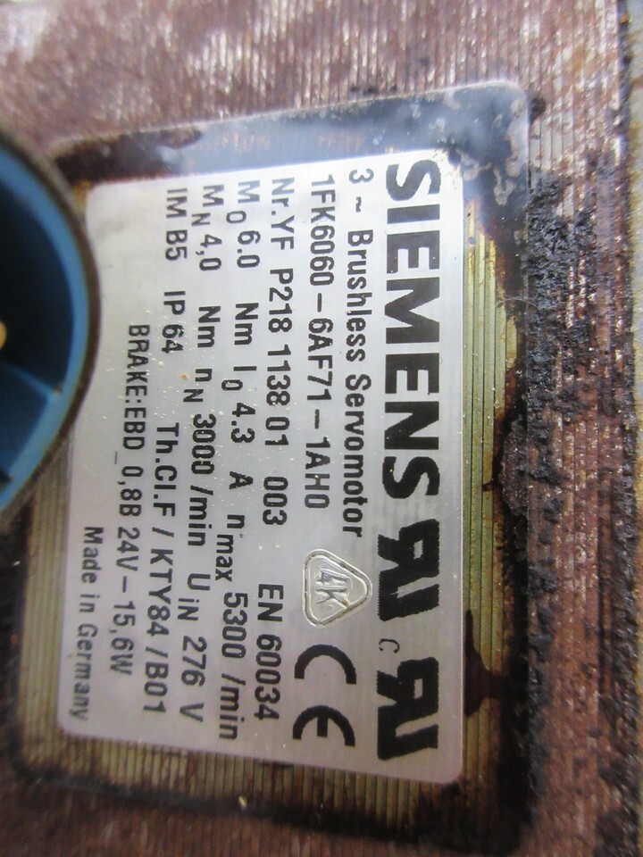SIEMENS SERVO MOTOR 1FK6060-6AF71-1AH0 WARRANTY