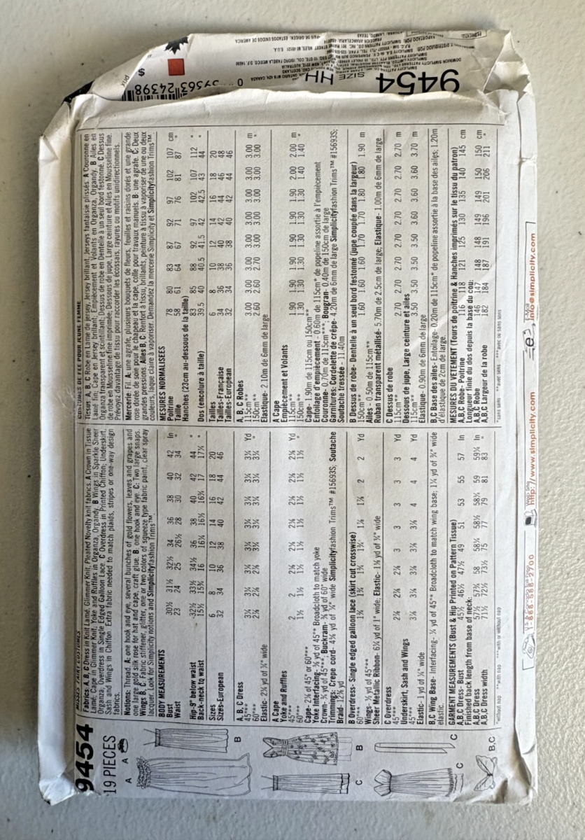 Simplicity Costumes 9454 Pattern Size HH and 21 similar items