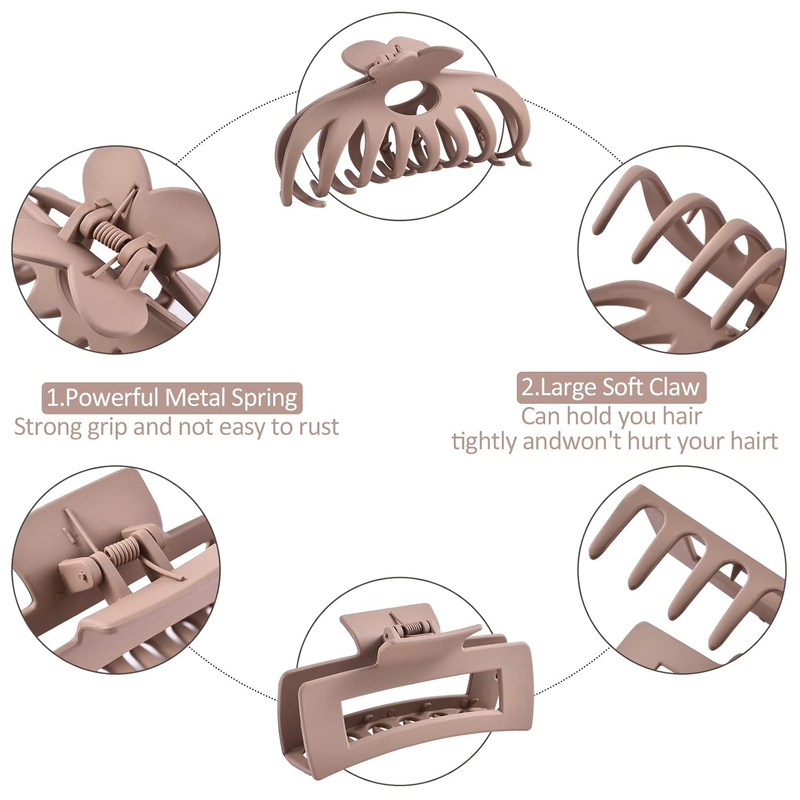 ?Fits for All Hairstyles?No matter your hair is thin or normal, These hair claws are equally applicable,There are four different sizes for all hair length and different hair styles like full bushy hair, thick curly hair, long straight hair and short thin hair.