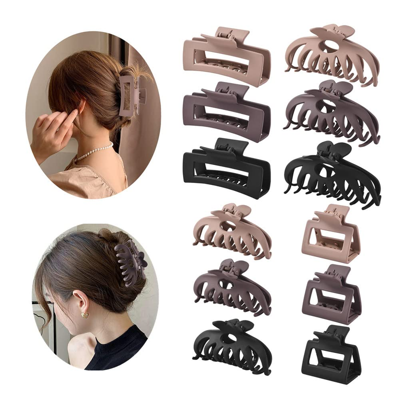 12 Pack Hair Claw Clips Include 4.1 Inch Large Clip and 2 Inch Small Clip for Thick Thin Hair, Strong Hold Jaw Clip Big Non-Slip Matte Hair Clips for Women,Neutral Colors?