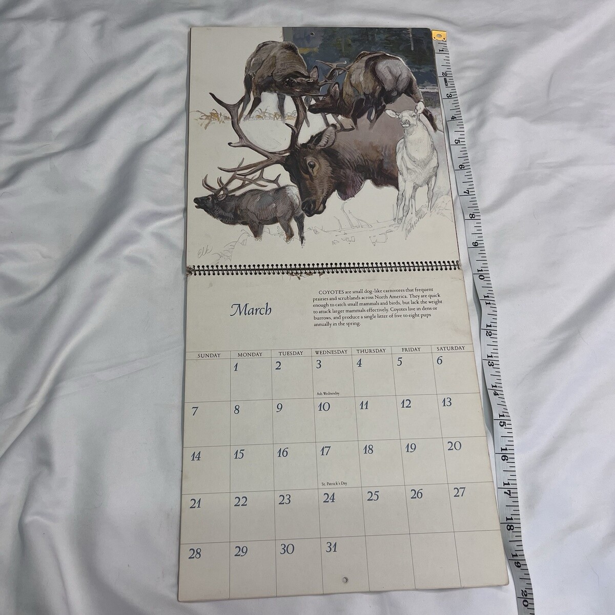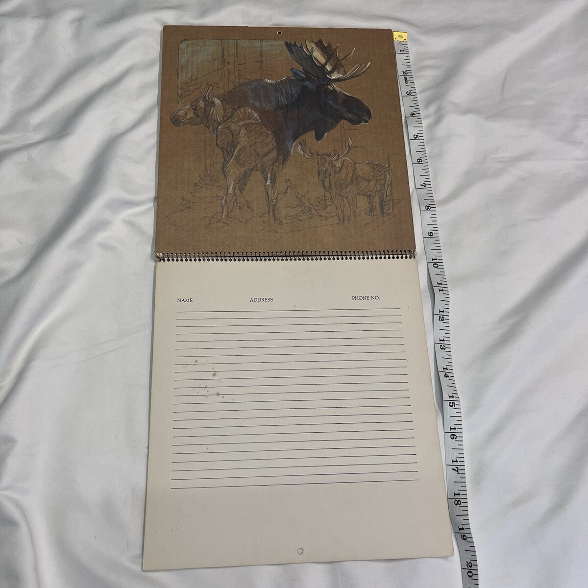 Vintage Hallmark Wildlife Calendar 1970s Animals Art Moose Elk Fox Quail Birds