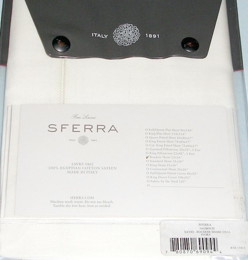 Sferra Savio Ivory Boudoir Sham Egyptian Cotton Luminous Sateen w/Hemstitch New