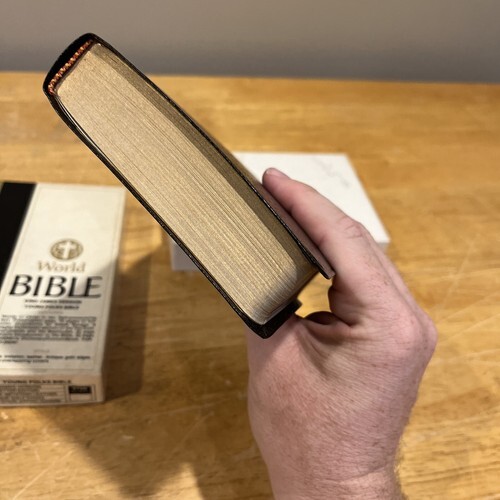 Holy Bible World Self Pronouncing type Young Folks Black KJV Bound Upside Down