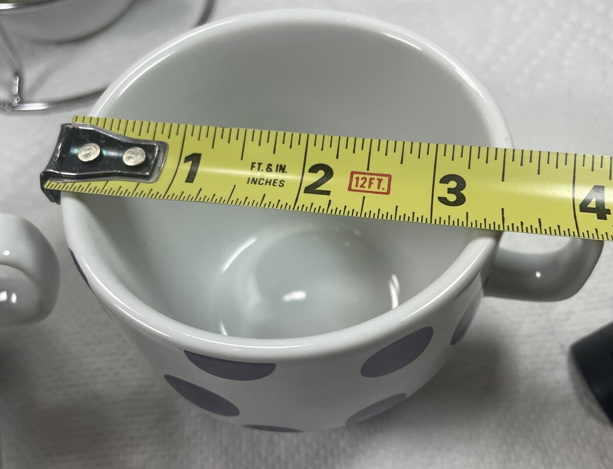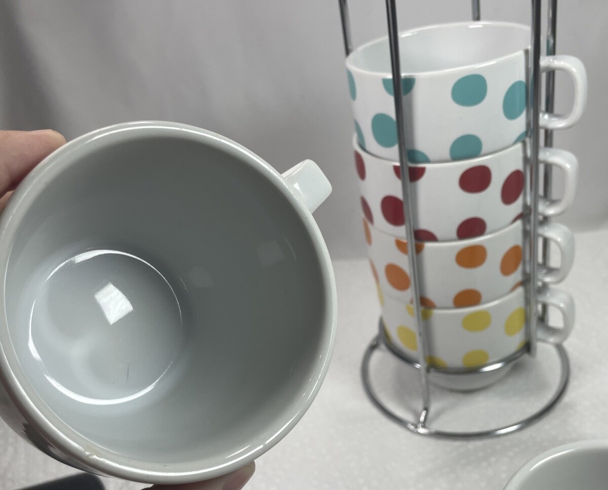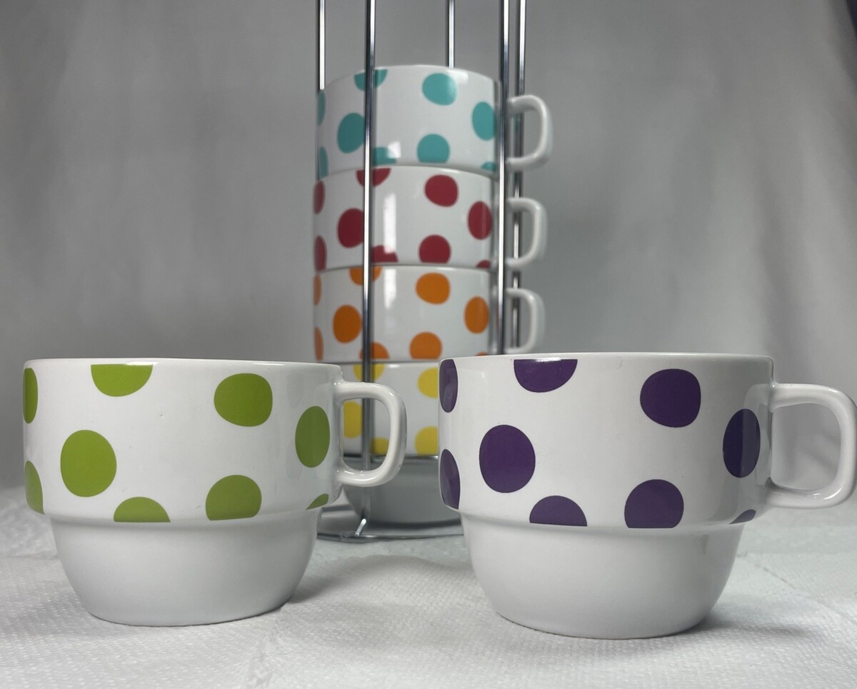 World Market Rainbow Polka Dot Stacked Coffee Tea Cups Metal Rack 8oz Set of 6