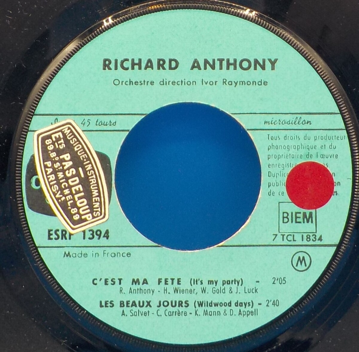 Picture Sleeve - Very Good, Some damage to back of Richard Anthony sleevewith minor all around wear - SEE PHOTOS