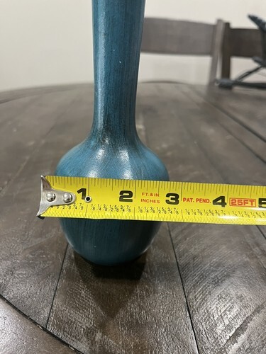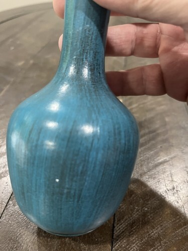 This vintage Haeger pottery bud vase is a beautiful addition to any collection. The unique combination of turquoise blue and black colors creates a stunning contrast on the clay material. The mid-century modern style and art pottery production technique make this vase a true piece of vintage originality. Perfect for display or as a decorative accent, this Haeger bud vase is sure to add a touch of elegance to any space.