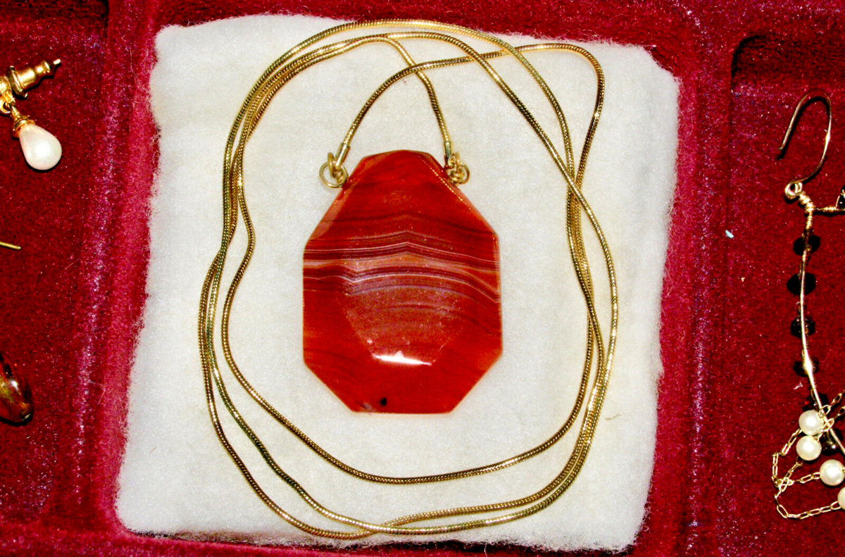 + ONE LONG FINE SNAKE CHAIN AND AGATE PENDANT NECKLACE;