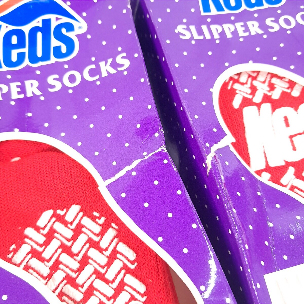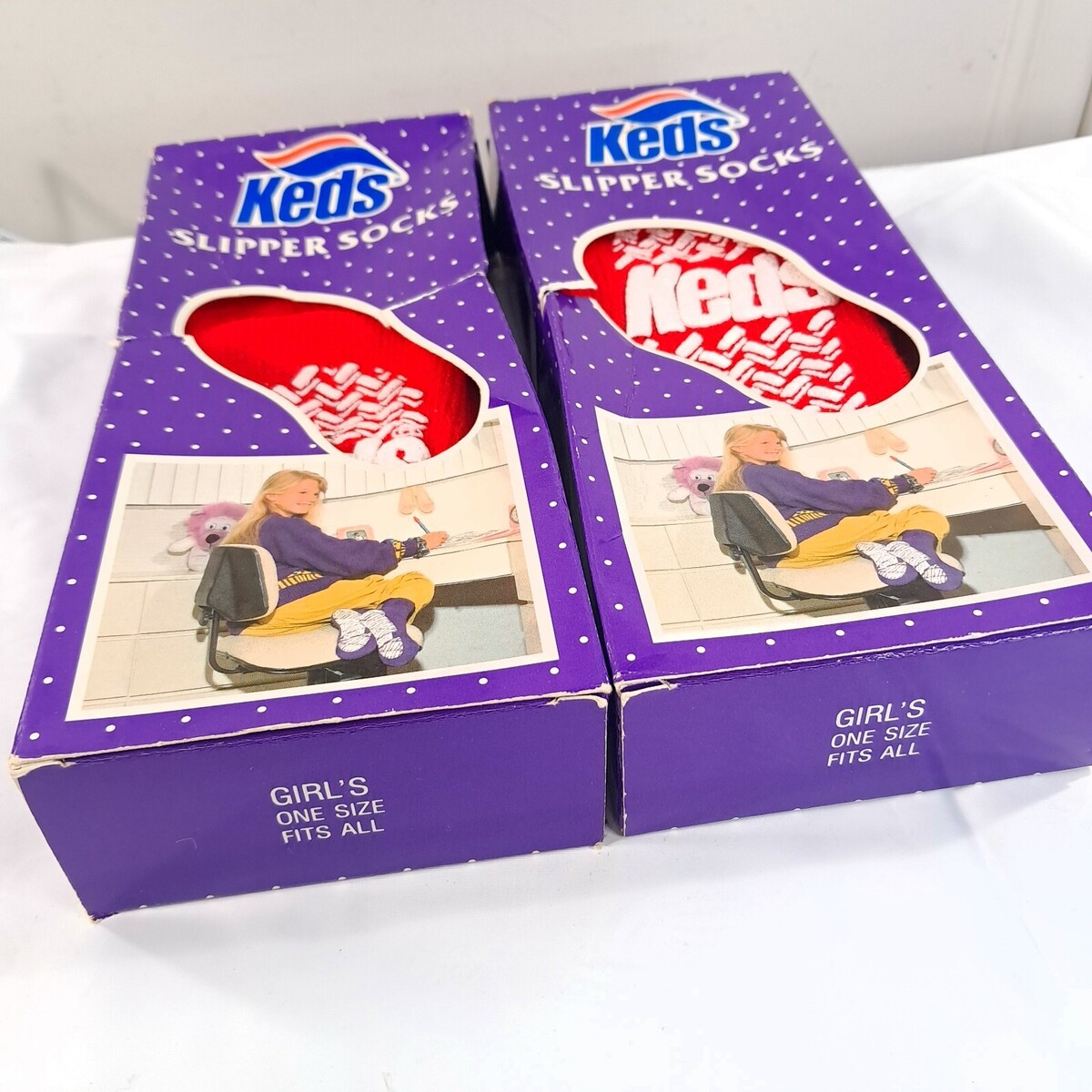 Vintage New Keds Slipper Socks set 2 pairs girls one size red gripper kids boys