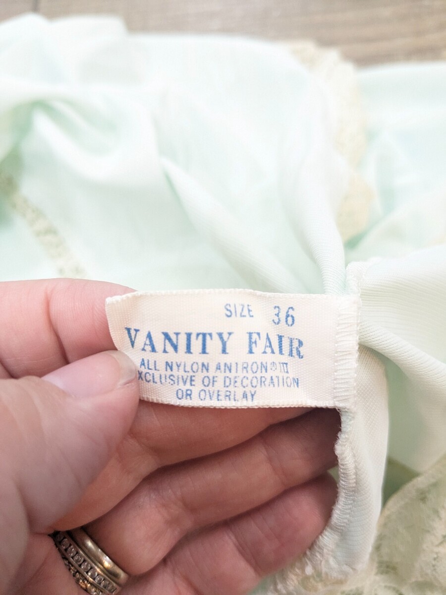 Vintage Vanity Fair Long Nightgown sz 36 green Soft Nylon lace trim nightie USA