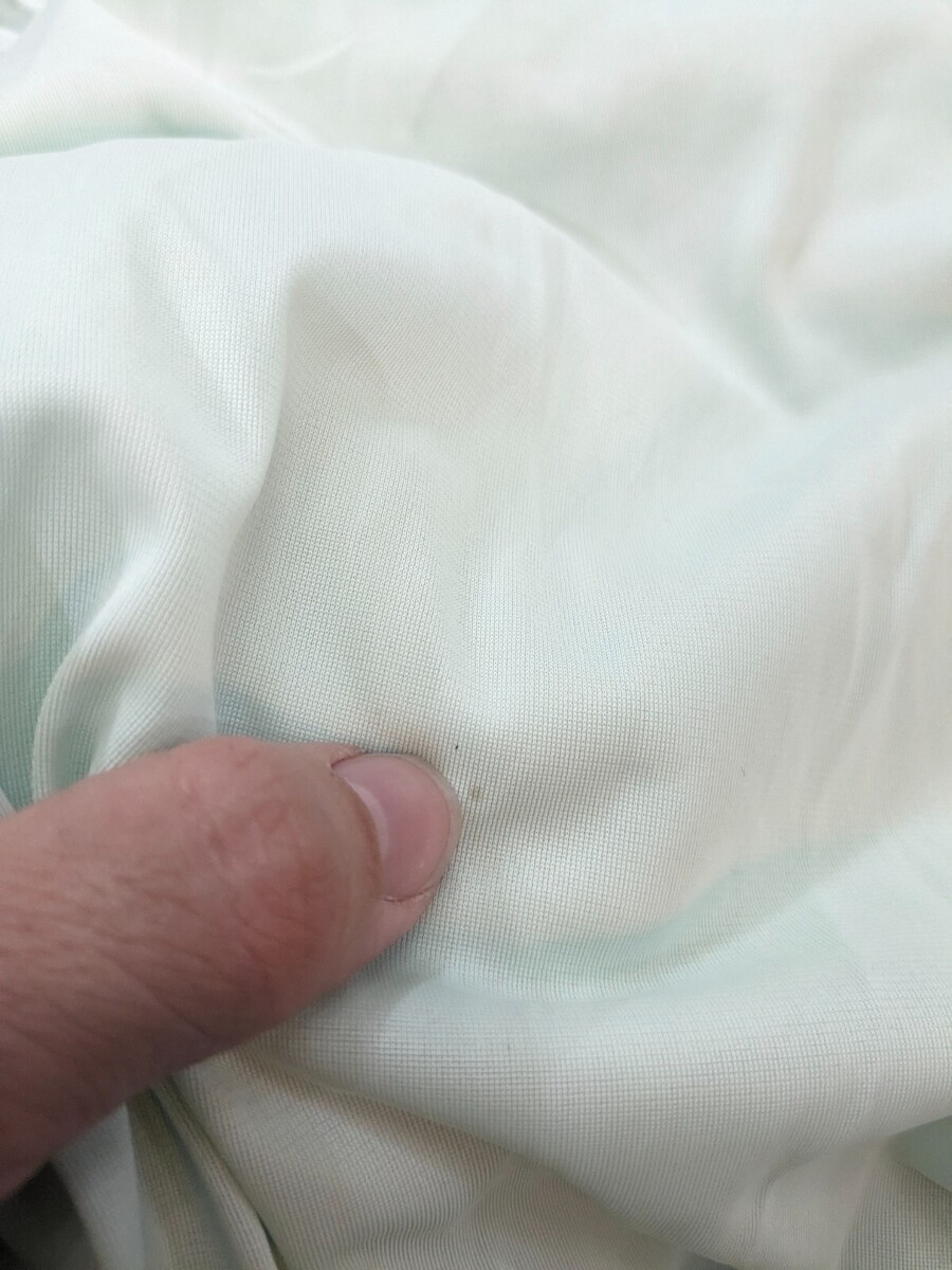 Made in USA. Soft pastel seafoam green with cream trim. See pics for measurements. Some small light colored spots but overall very good condition. See pics.