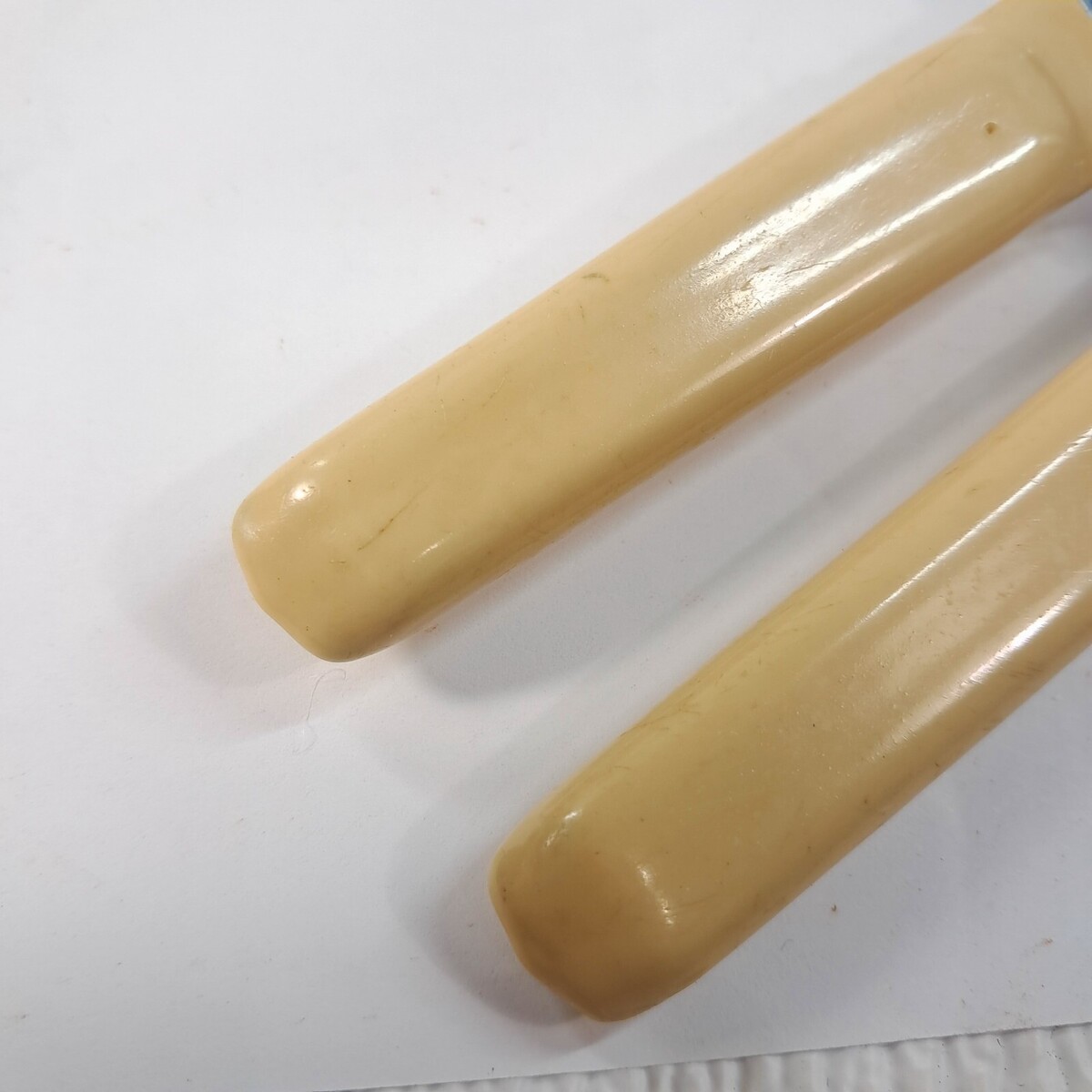 Cream/off white soft plastic coated handle. Some wear/patina/rust from use as shown. See pics for details.