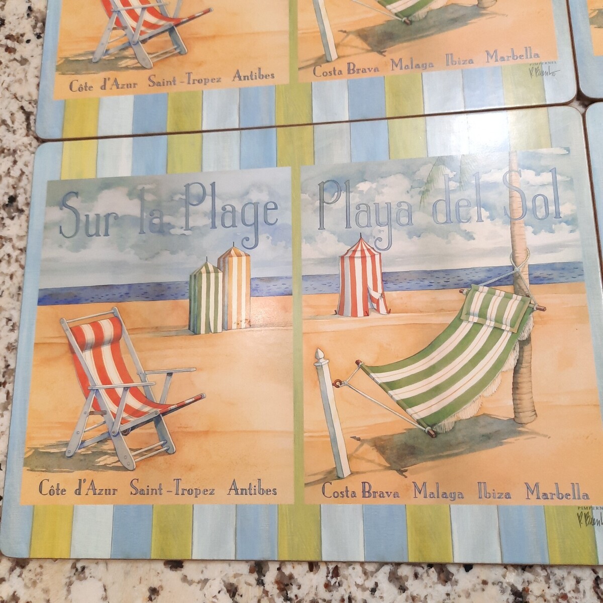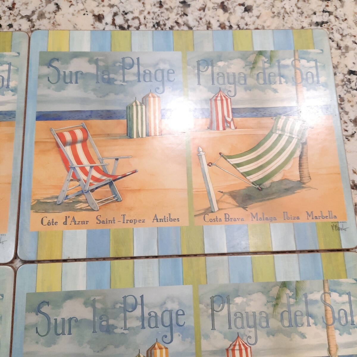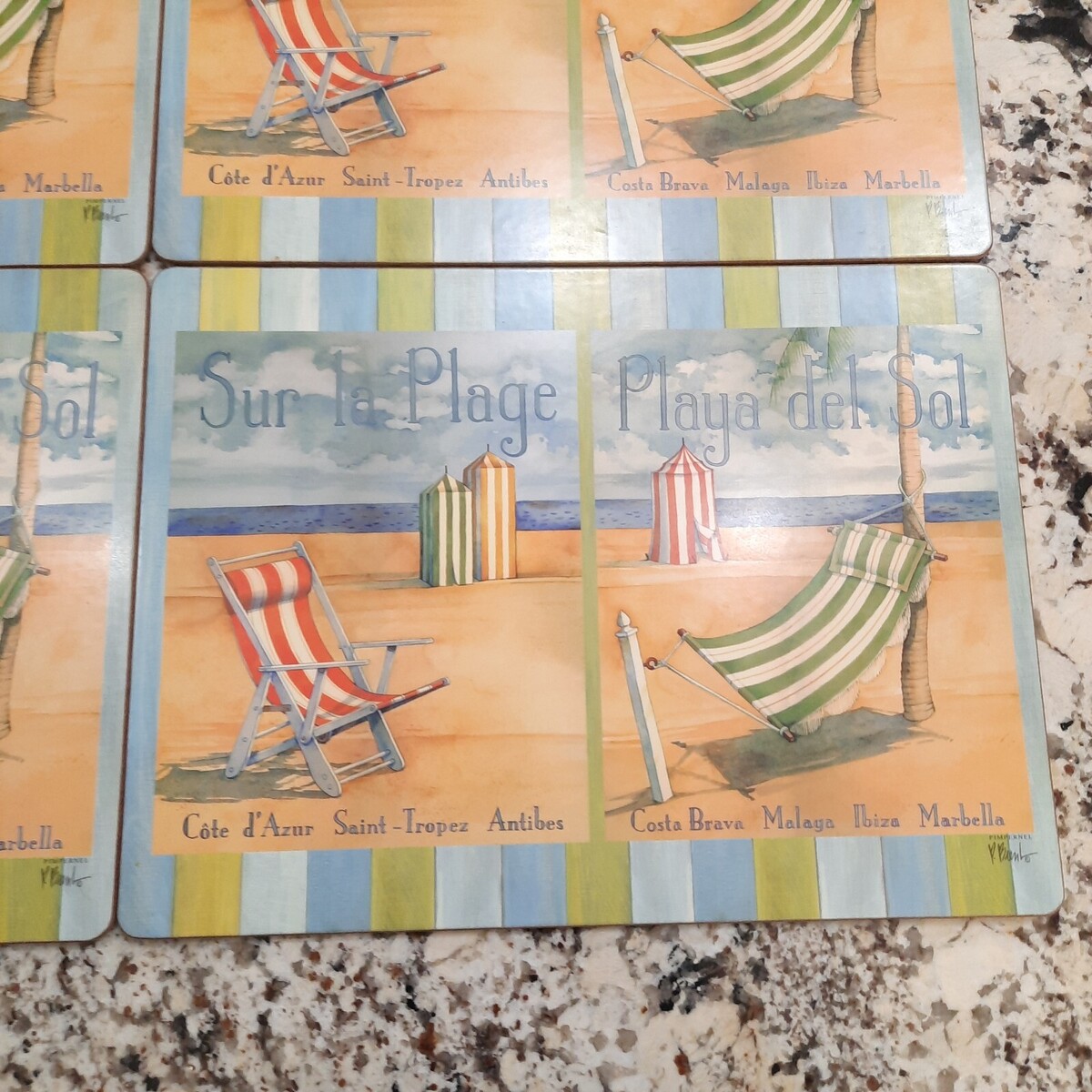 Paul Brent Pimpernel Placemats Cork x4 Playa del Sol Sur La Plage Beach Cabana