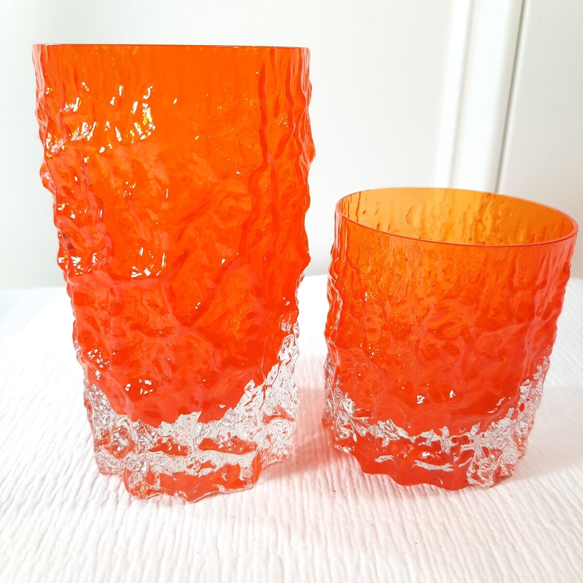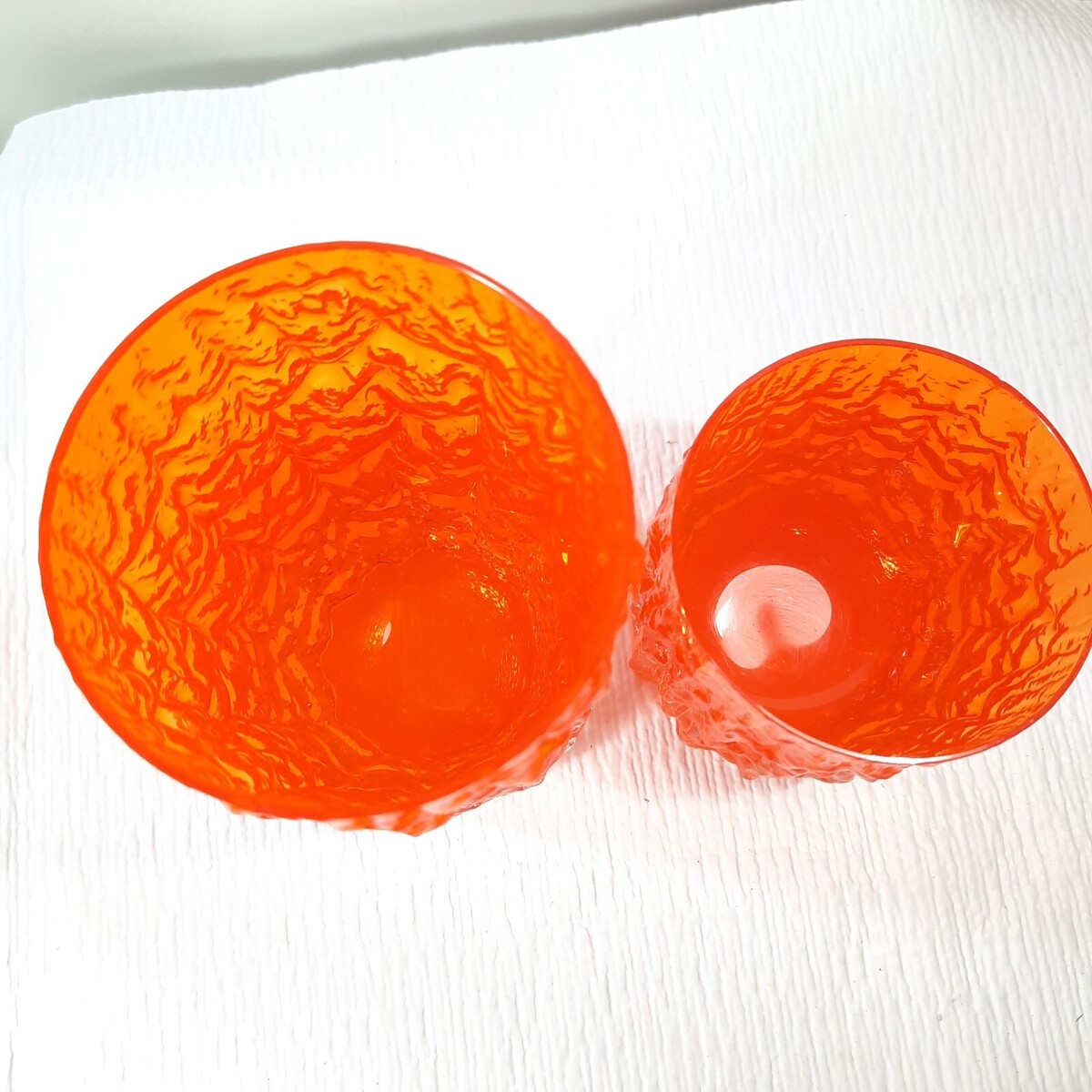 Vintage Selezione IVV Italian Crystal Glacier Ice Bark Glass Tumblers x2 orange
