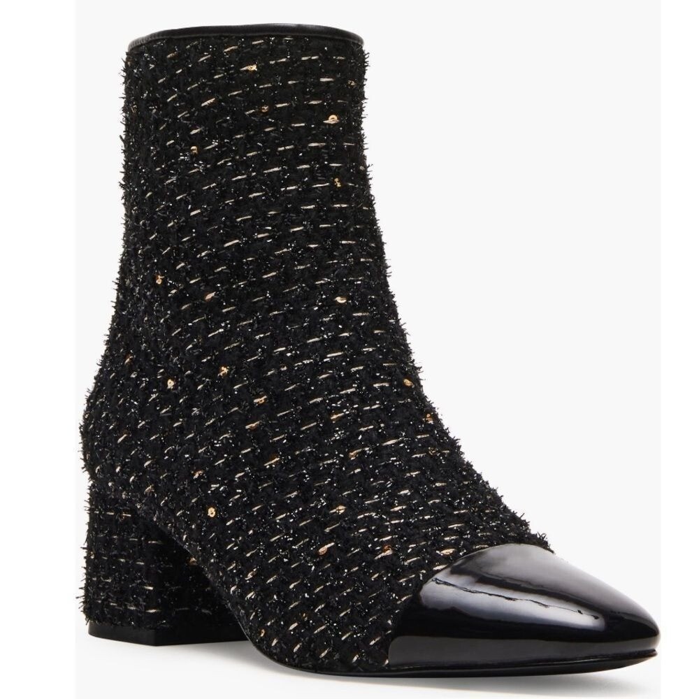 Steve Madden Eiffel Bootie, Tweed Black Sparkle, Low Block Heel, Size 8.5, NWT
