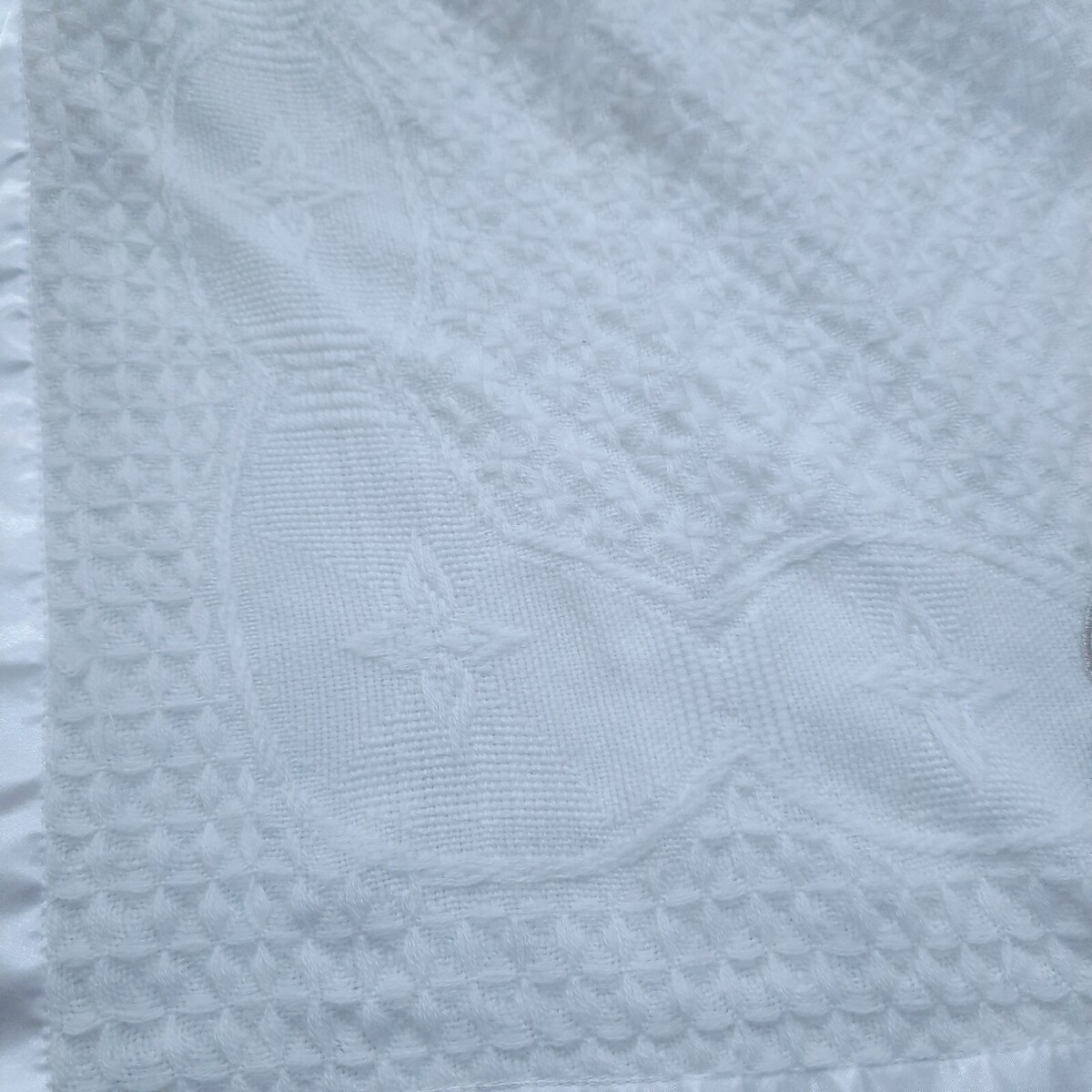 Thin acrylic blanket with satin edging. Applique teddy bear angel. From 2010. Very good to excellent condition.