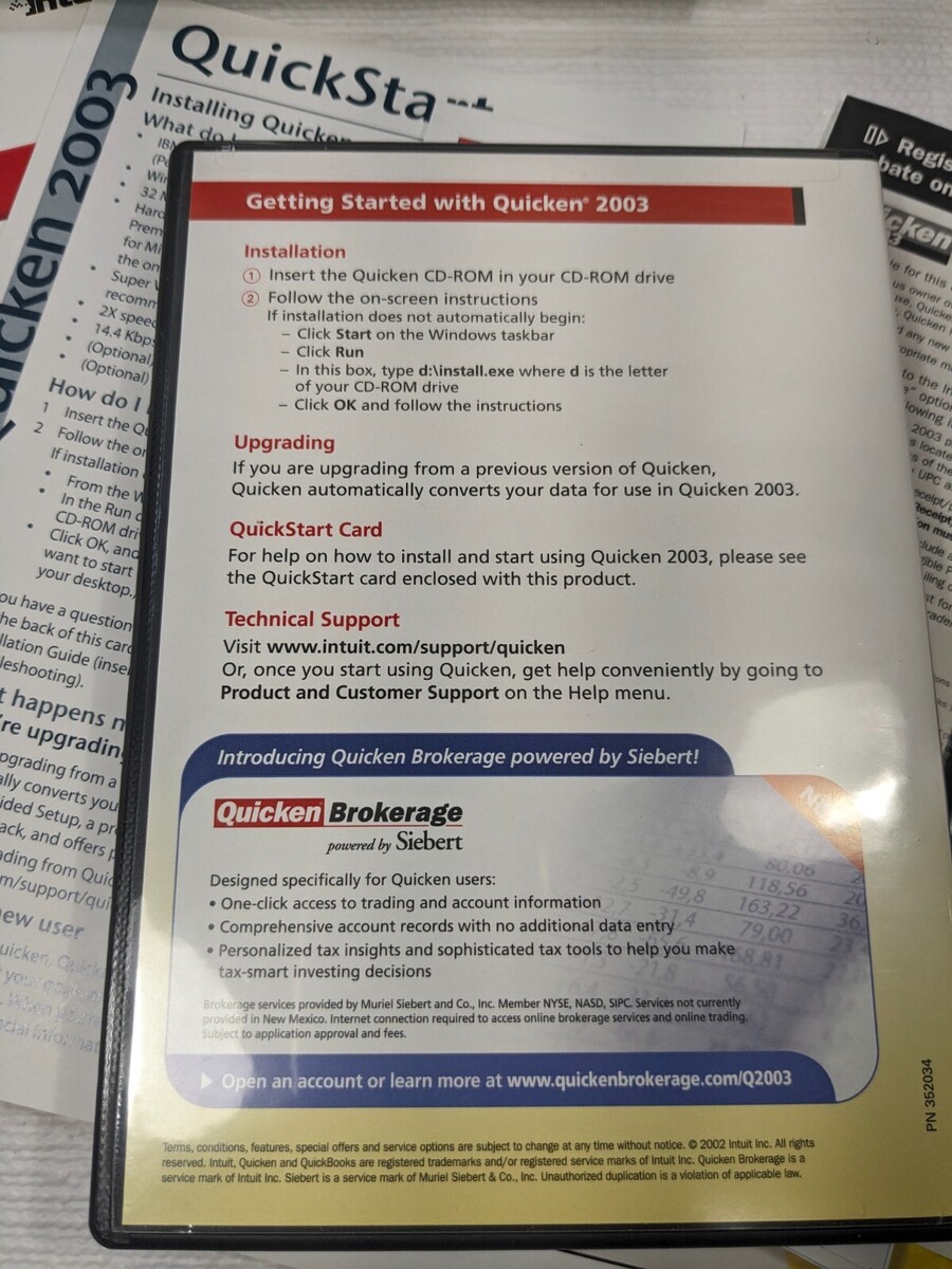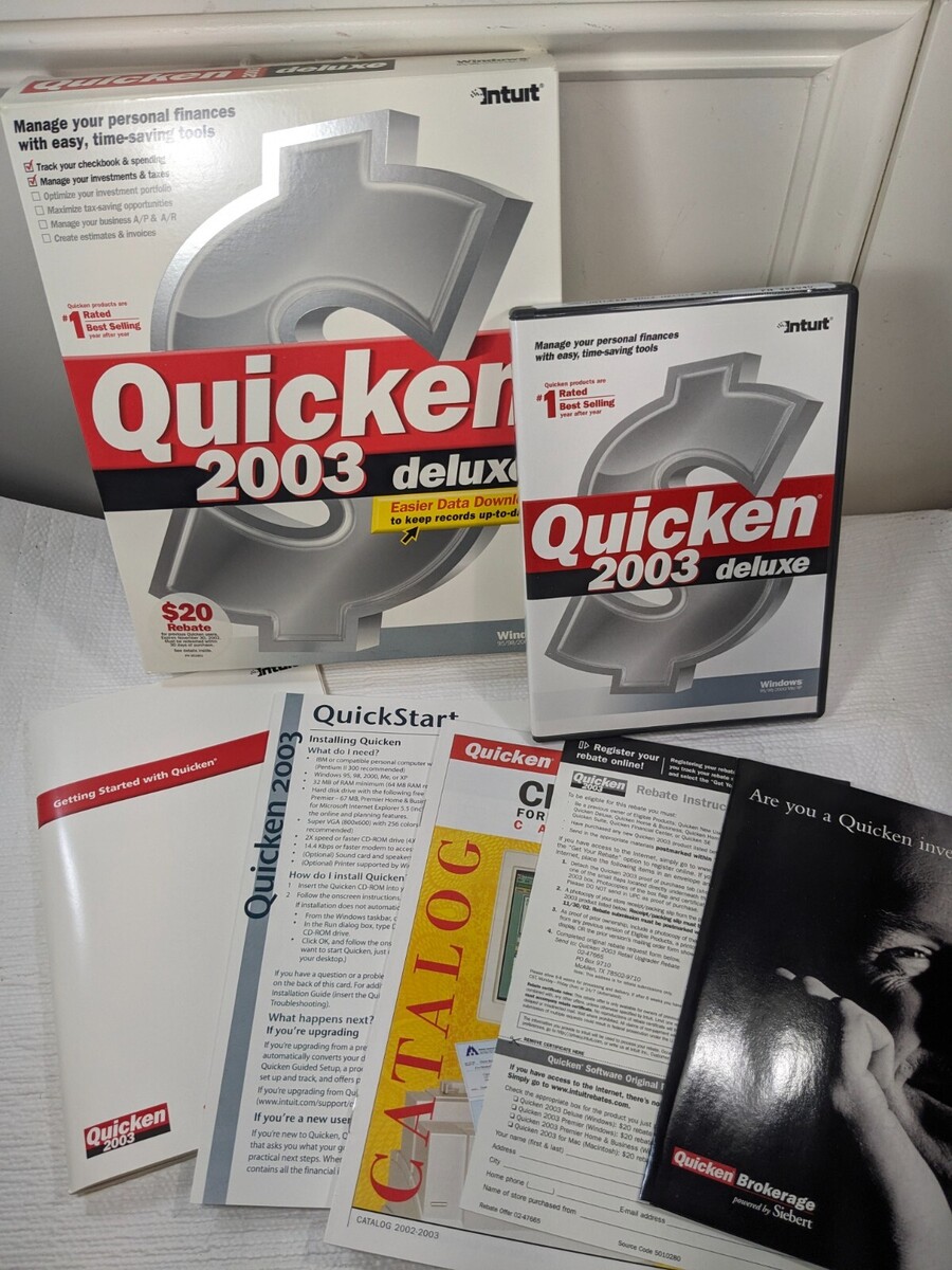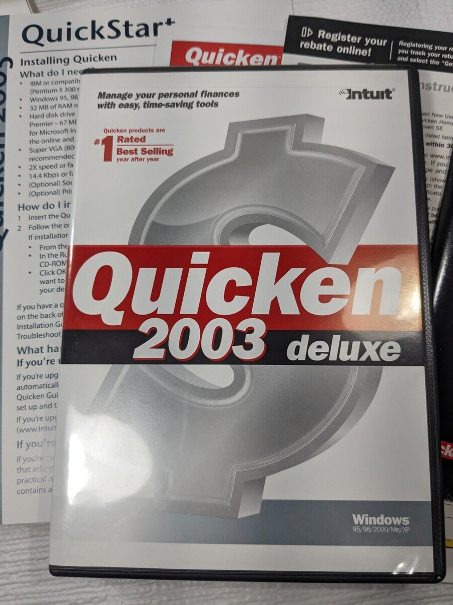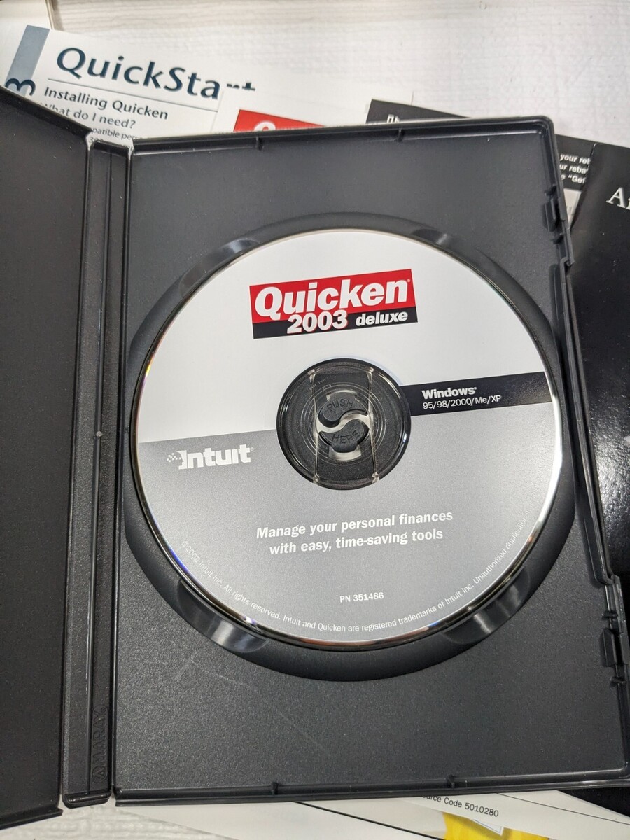 Quicken 2003 Deluxe software CD-ROM disc program Intuit Windows 95/98/2000/Me/XP