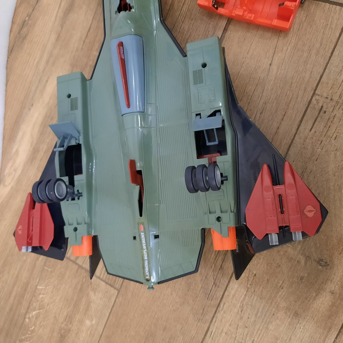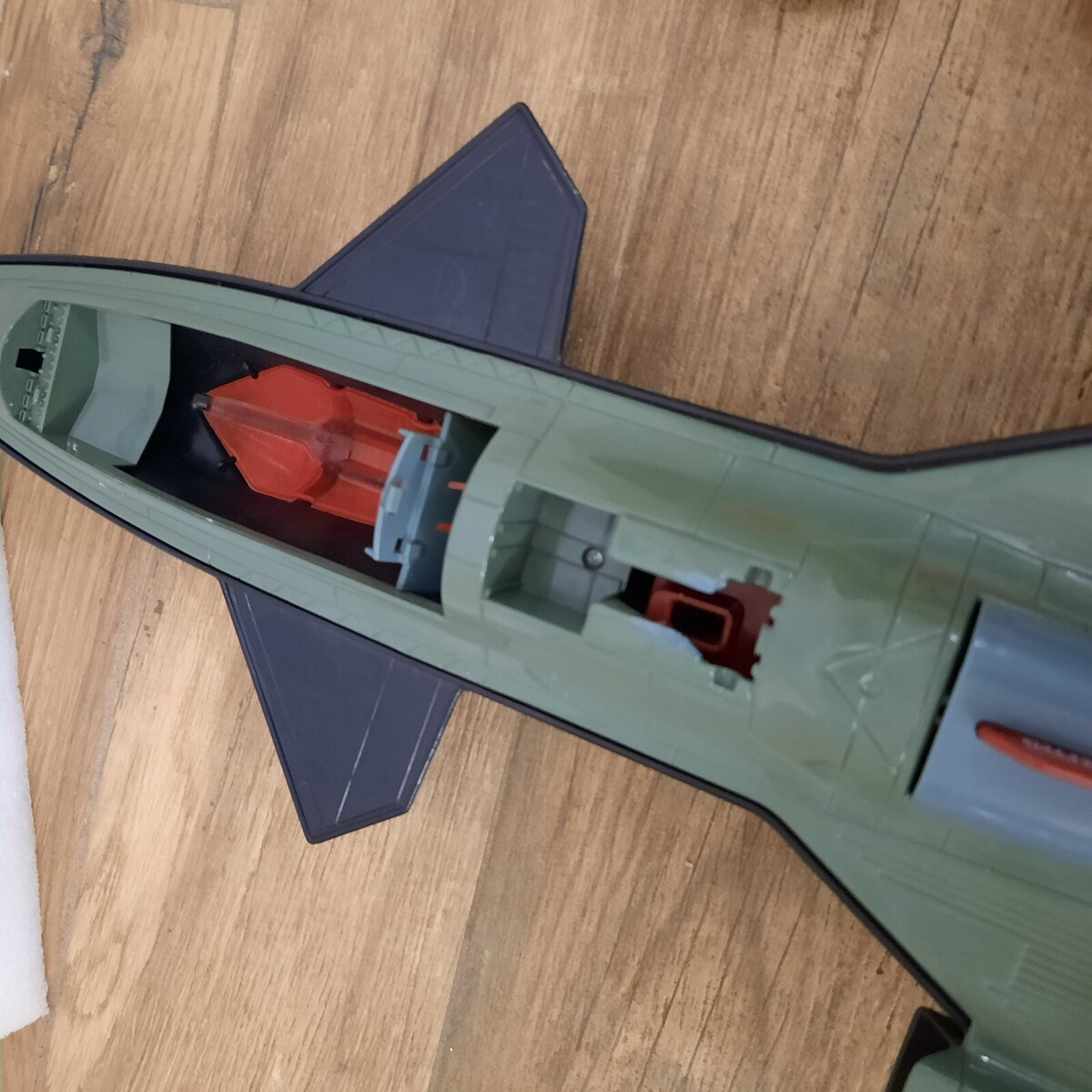 Missing parts but most of it is there. Missing atleast 1 missile and cockpit base. Piece near front landing gear is broken and front landing gear isn't inserted. May be missing other parts. Includes Strato Viper action figure. Play wear as shown. Let me know if you have any questions.