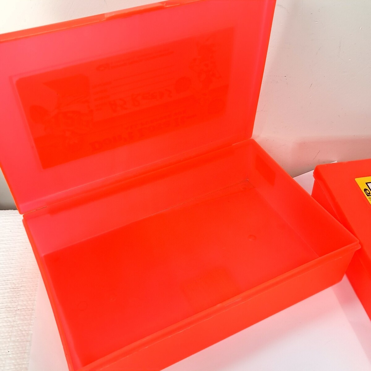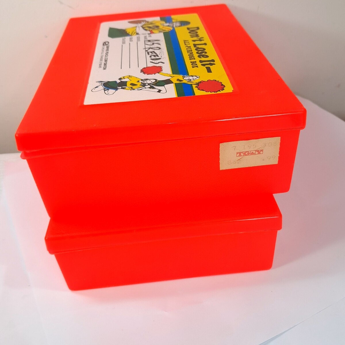 Includes 2 plastic cases in a neon almost translucent reddish/orange. Empire Pencil Corporation. one has a School Bus the other a Football player and cheerleaders. Writing on boxes as shown. See pics.