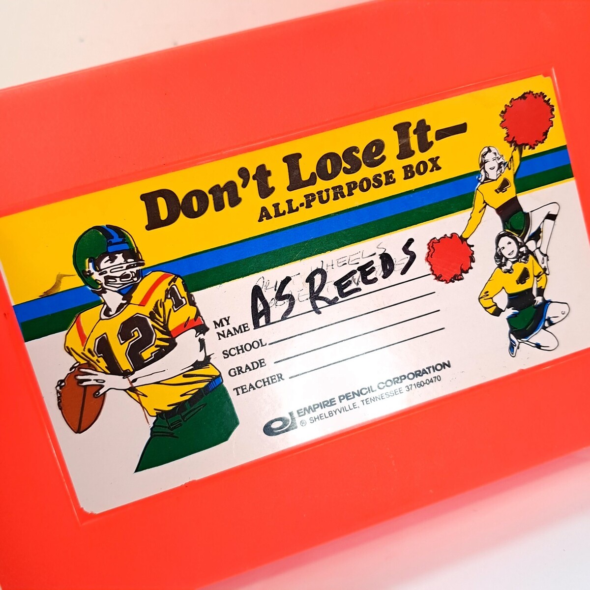 Vintage Empire Pencil Plastic School Box Case School Bus Football cheerleaders