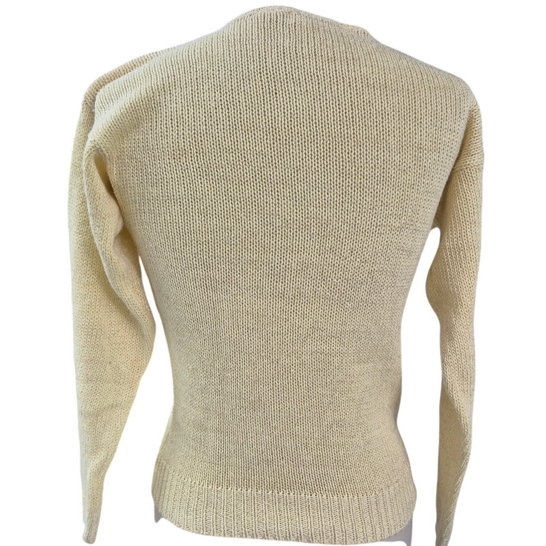 Vtg 80s 90s Adele Barre Ramie Blend Yellow Intarsia Sweater Abstract Metallic M in good condition, there is a light stain down the front, it is lighter than is in the pics, but still there.