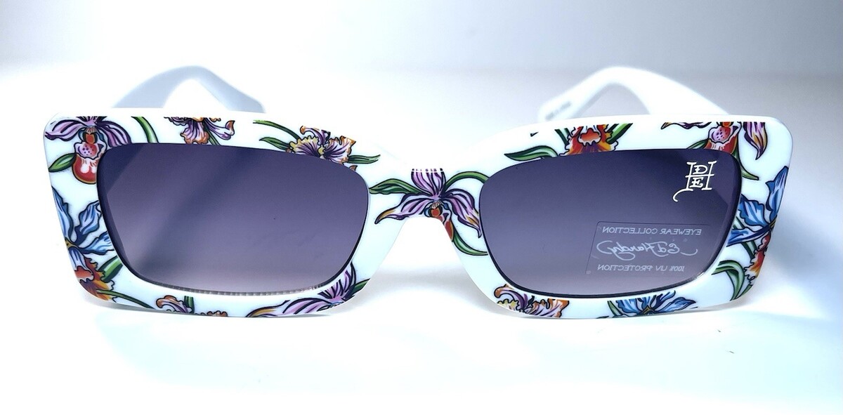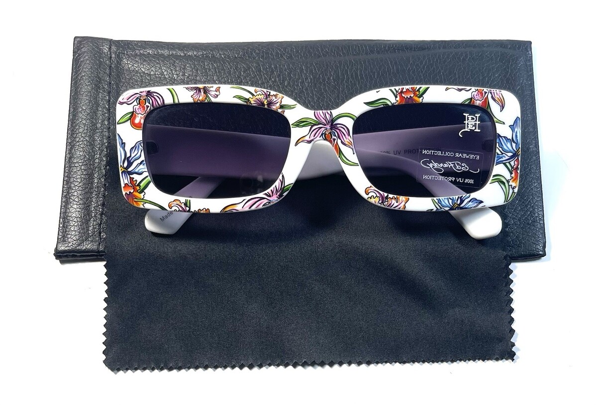 NWT ED HARDY White Floral Flower Multicolor Sunglasses + Case