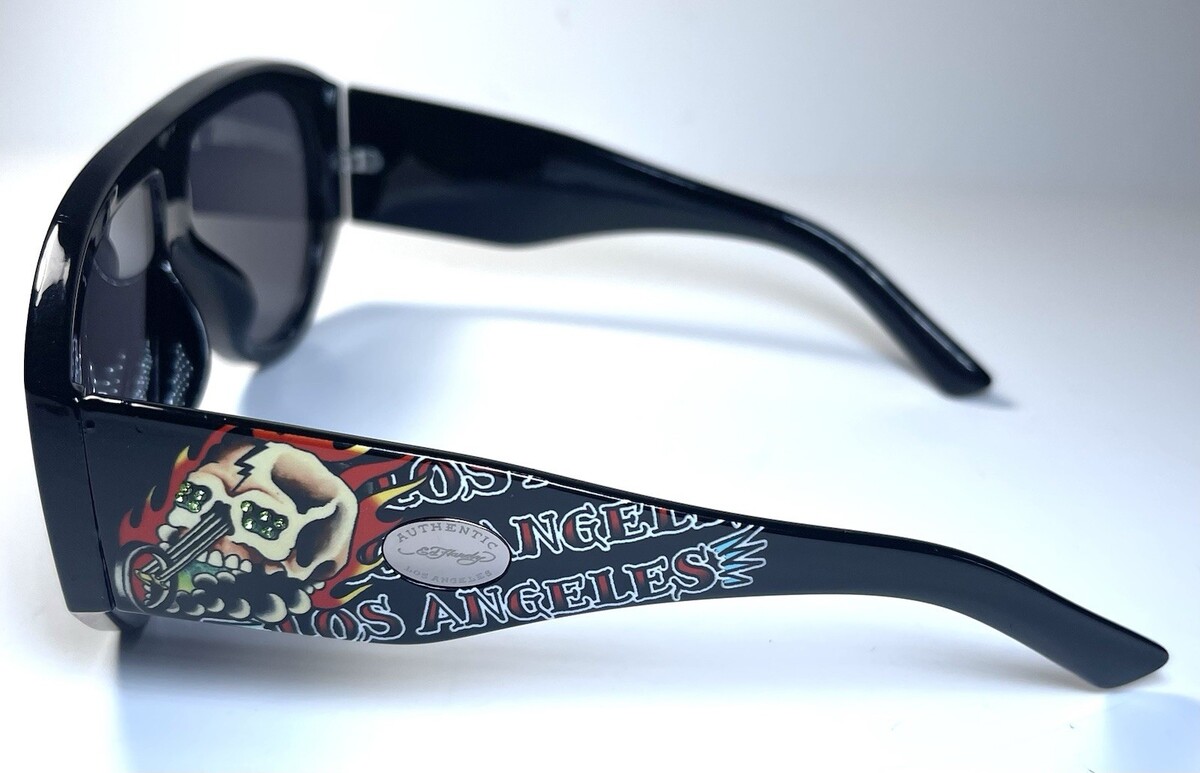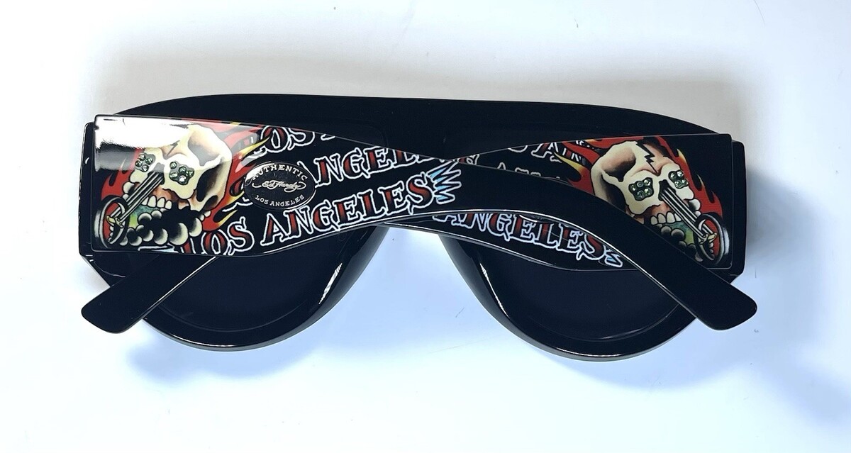 NEW ED HARDY Rhinestone Black Skull Head Los Angeles Authentic Sunglasses + Case