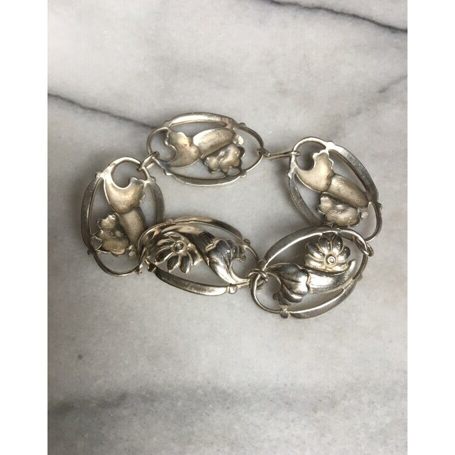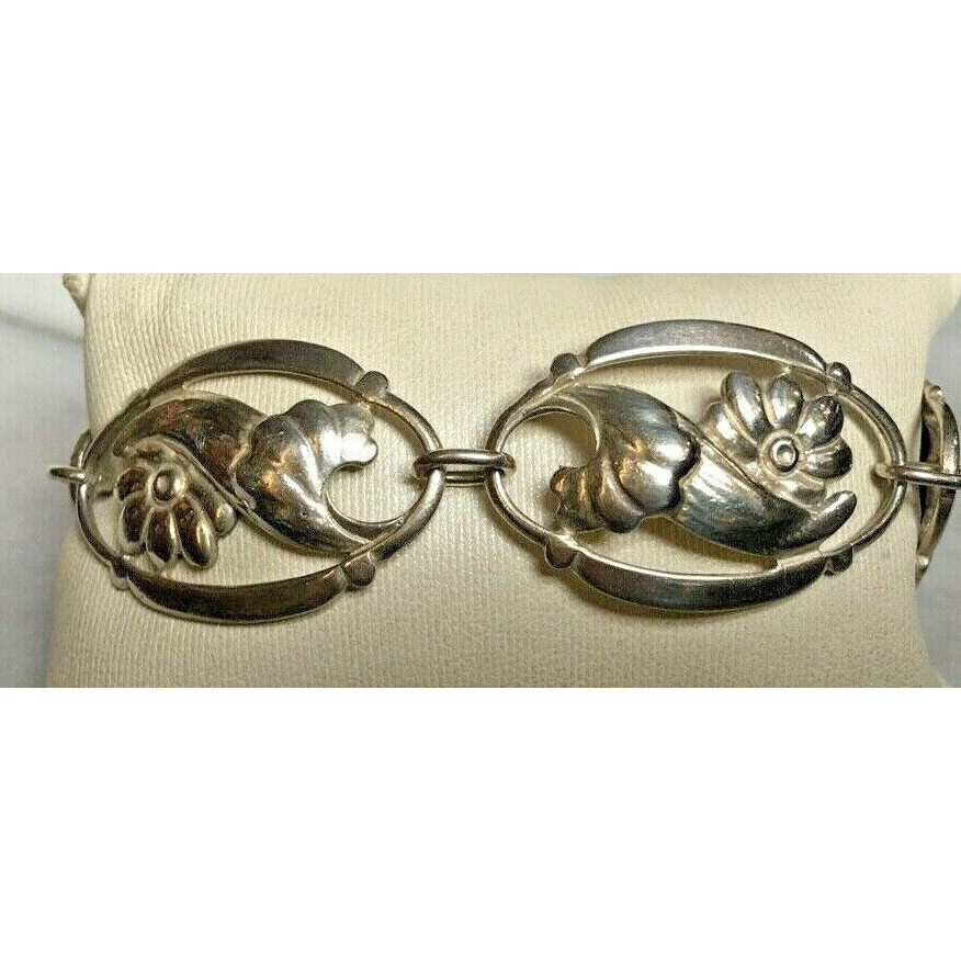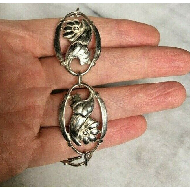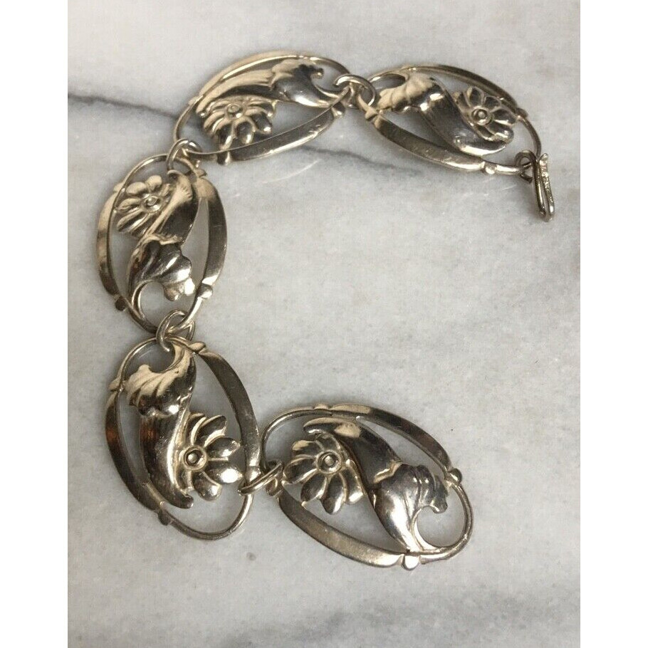 MODERNIST SIGNED ANDES 925 STERLING SILVER FLORAL BRACELET SKY