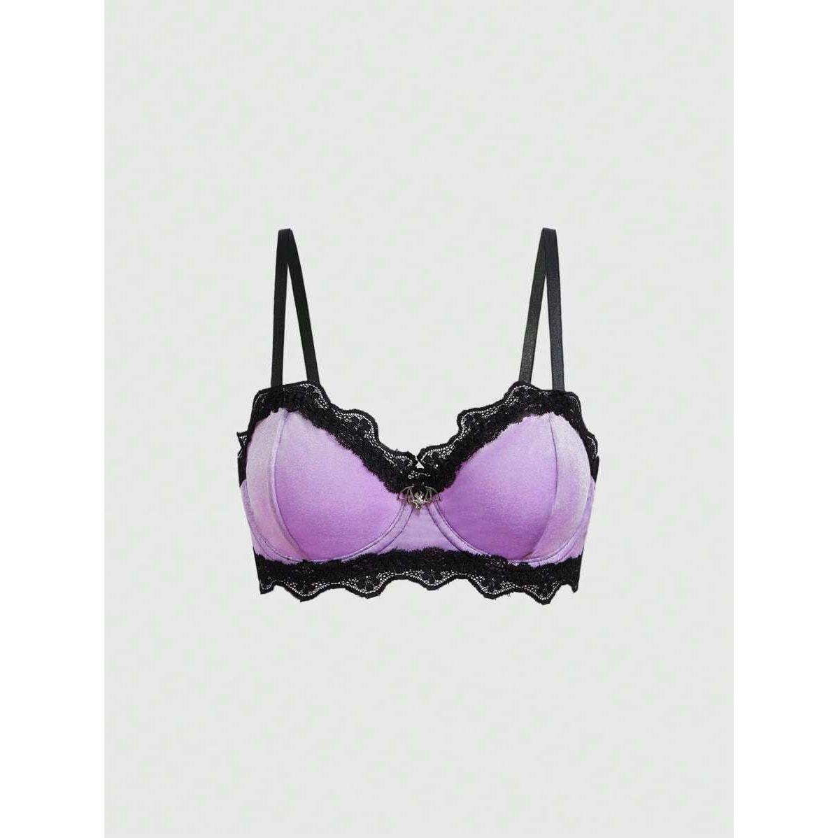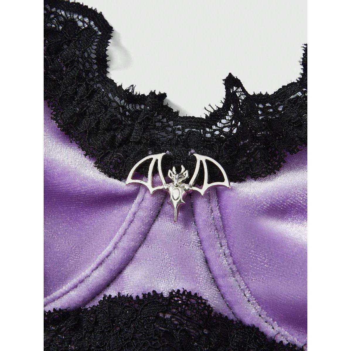 Turn up the dark romance with this stunning gothic-style bra featuring a luxurious deep purple velvet fabric trimmed in delicate black lace. A silver-tone bat charm detail at the center adds a bold, edgy finish ? perfect for Halloween, alt fashion, or everyday wear with a unique twist.