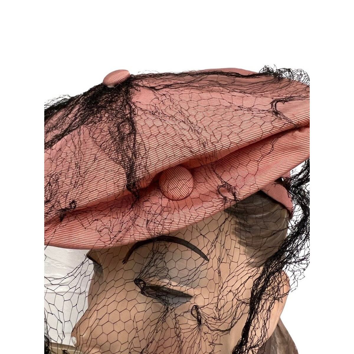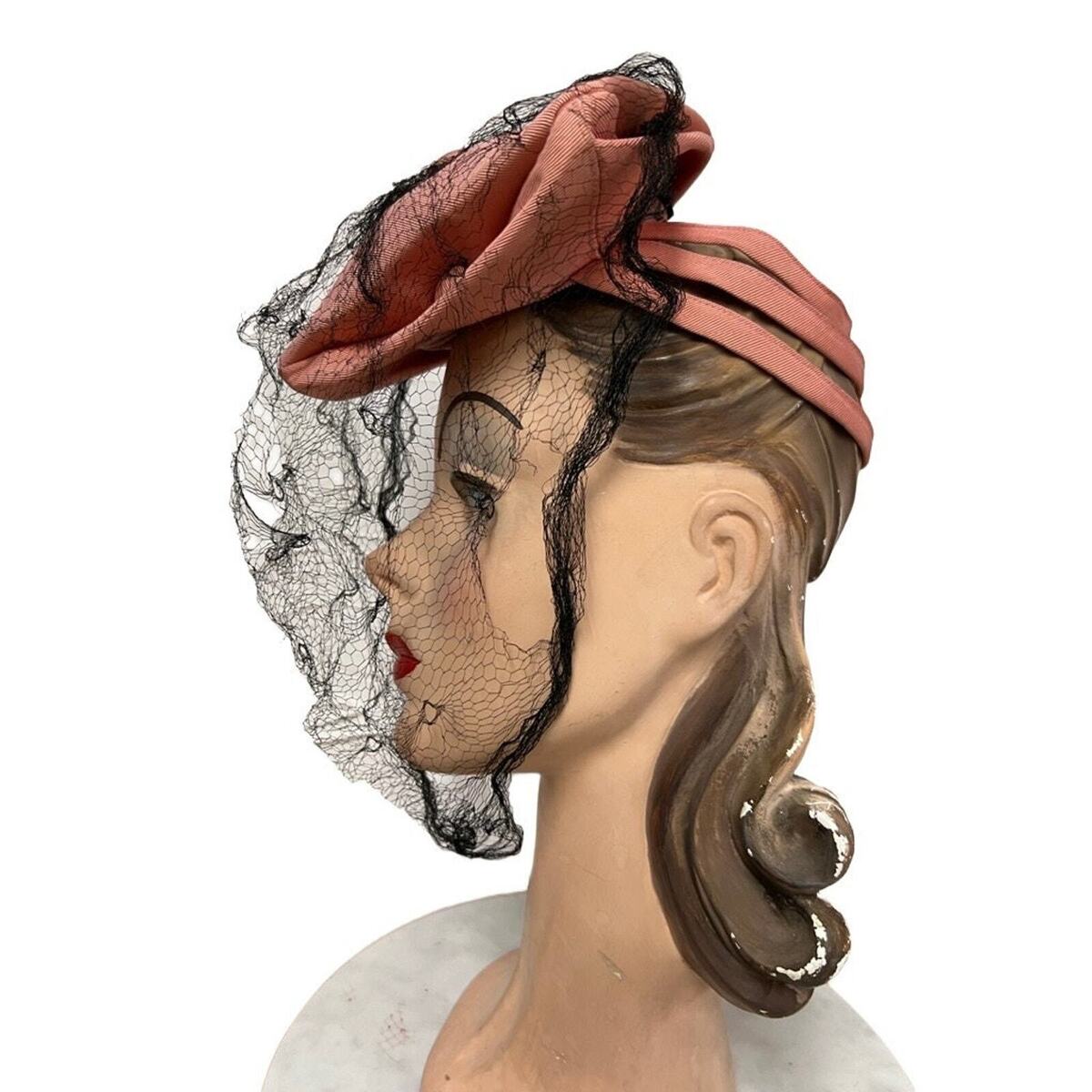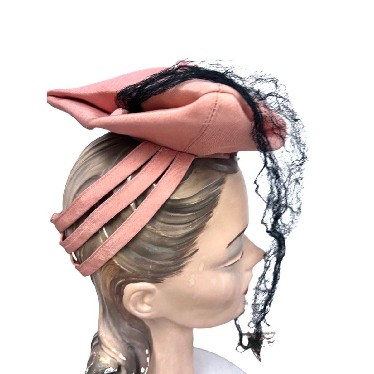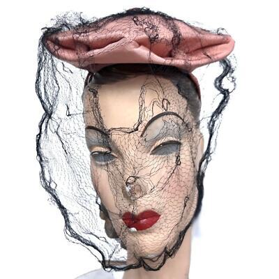 VTG 1940s Pink Fascinator Hat w/Black Veil and 42 similar items