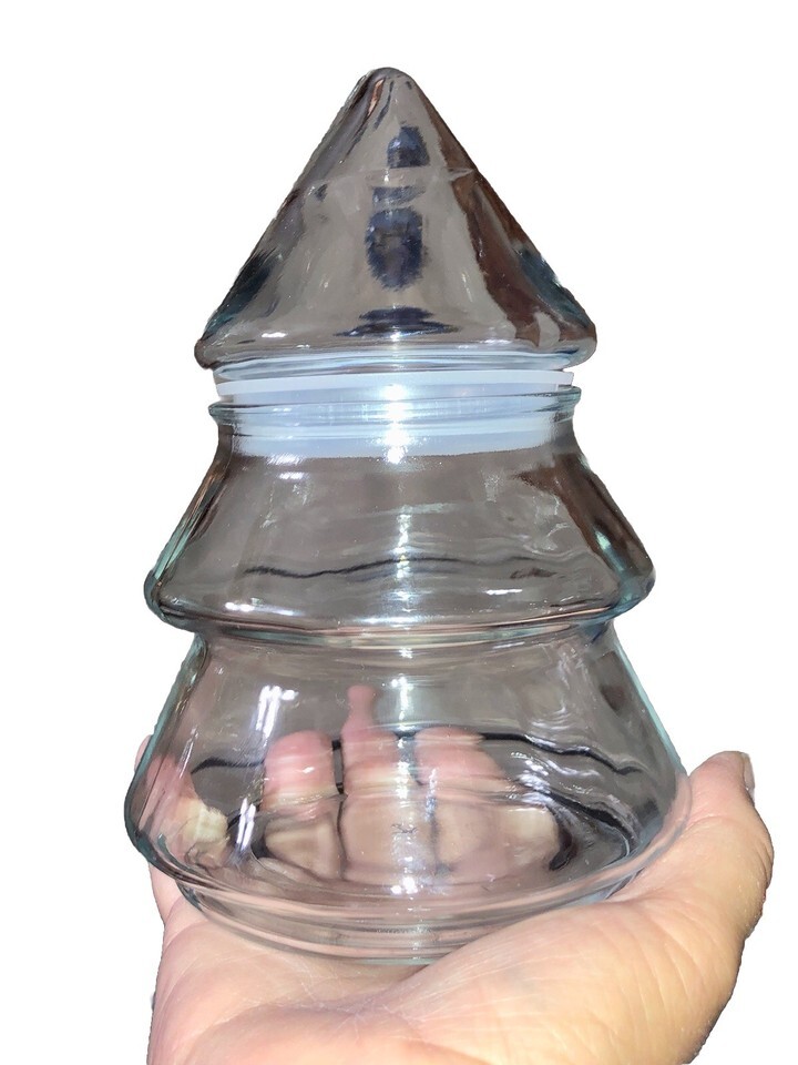 Vintage Clear Glass Christmas Tree Shaped Holiday Candy Jars 6.5” Tall Seal