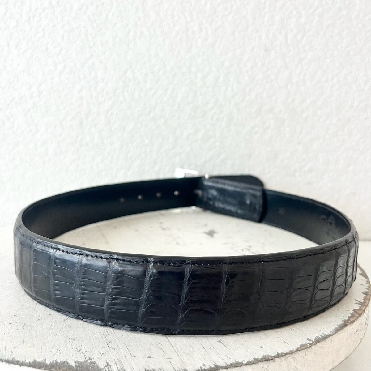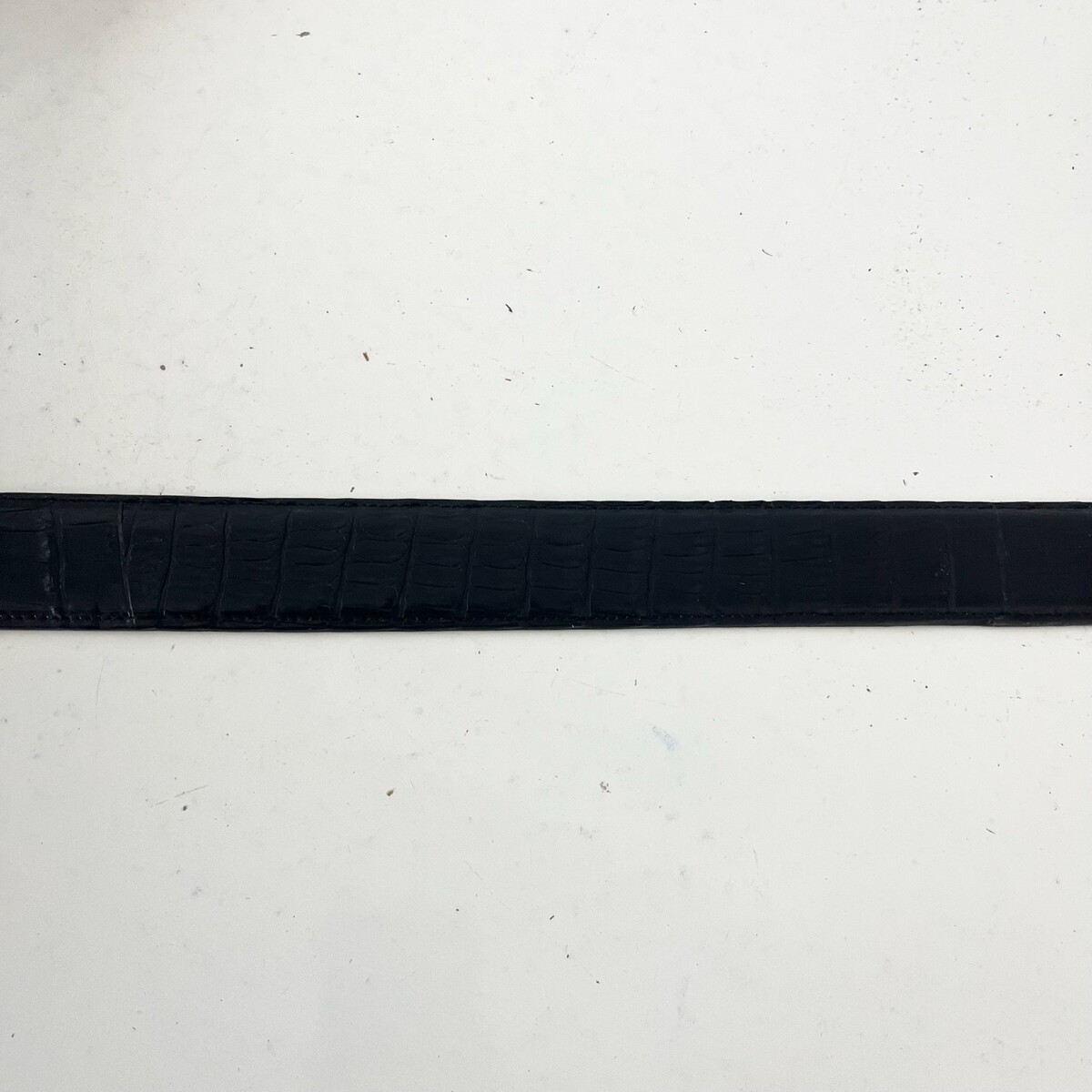 These are Rod Patrick Bootmakers Mens Belts in Black Caiman Leather that is 1.5" wide with a Straight End. This is made in Mexico of Genuine Alligator Leather.