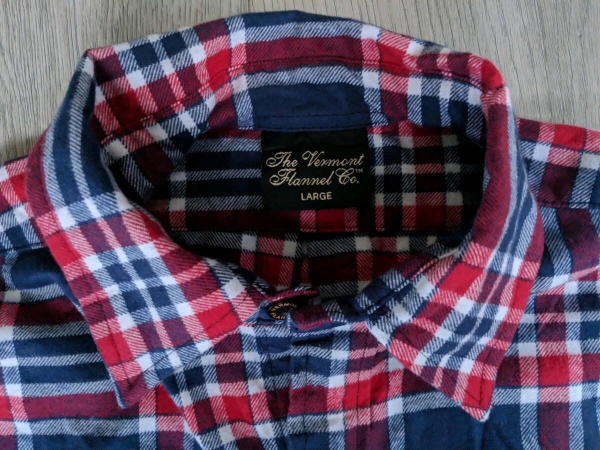 The Vermont Flannel Co Shirt Men's Large Red/White/Blue Plaid Button Up. In EUC, see pics. Bin U6