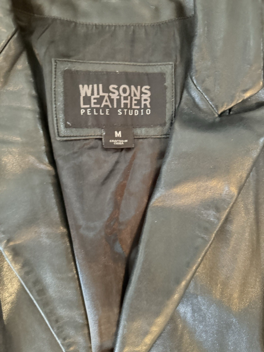 Vintage Wilsons Women's Long Leather Jacket Size M Black Pelle Blazer Y2K
