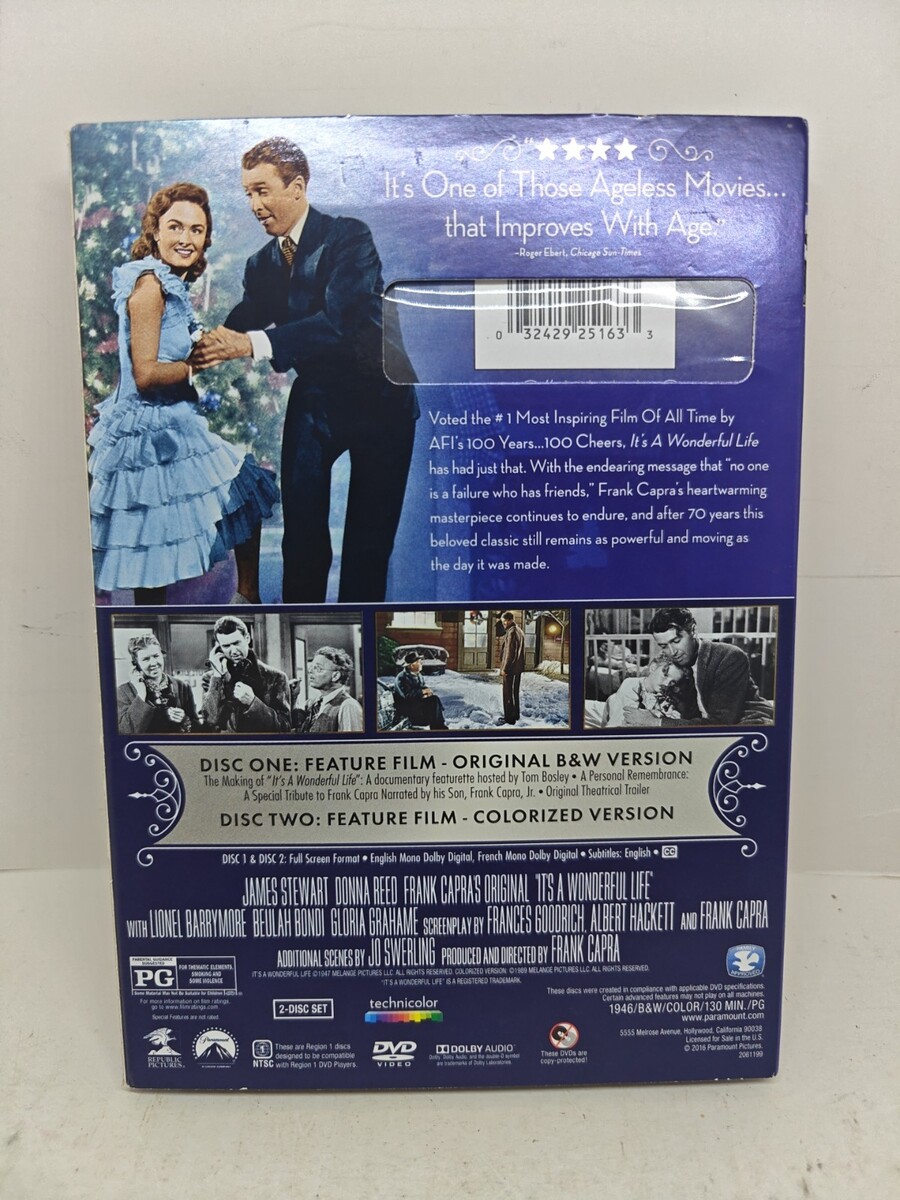 The "It's A Wonderful Life Platinum Anniversary Edition DVD" is a special 2-disc set featuring the classic holiday movie in a tall DVD case. Released in 2006 by Paramount-SDS, this edition celebrates the 70th anniversary of the beloved film. With a PG rating and a runtime of 261 minutes, this DVD is perfect for fans of drama and holiday-themed live action movies. The movie is in English and was produced in the United States in 1946, making it a timeless and cherished addition to any movie collection.