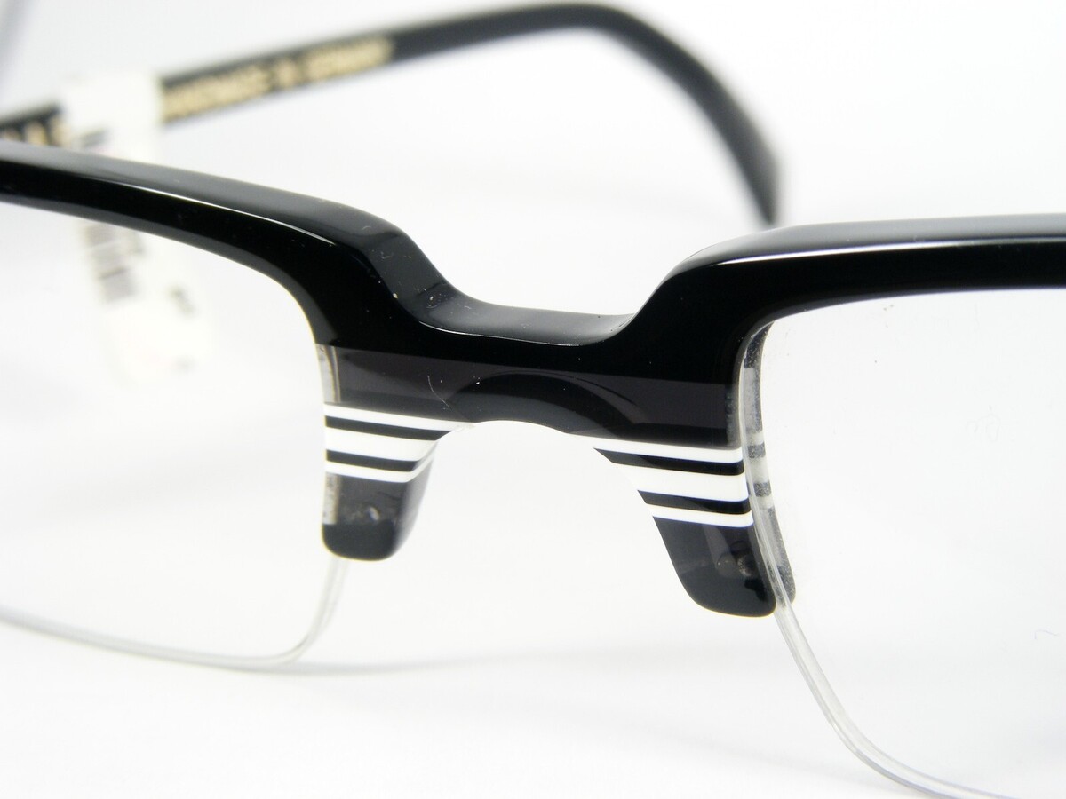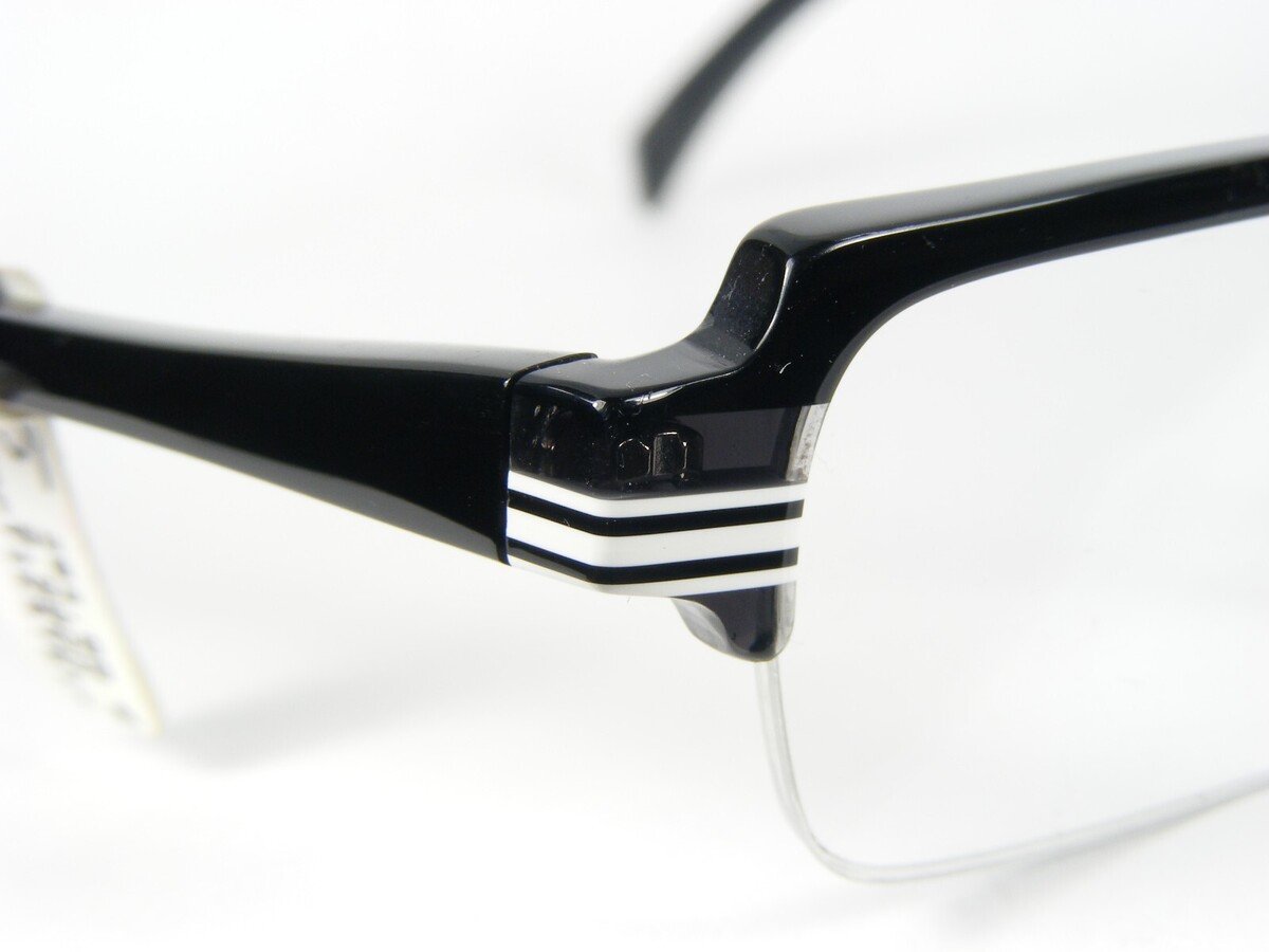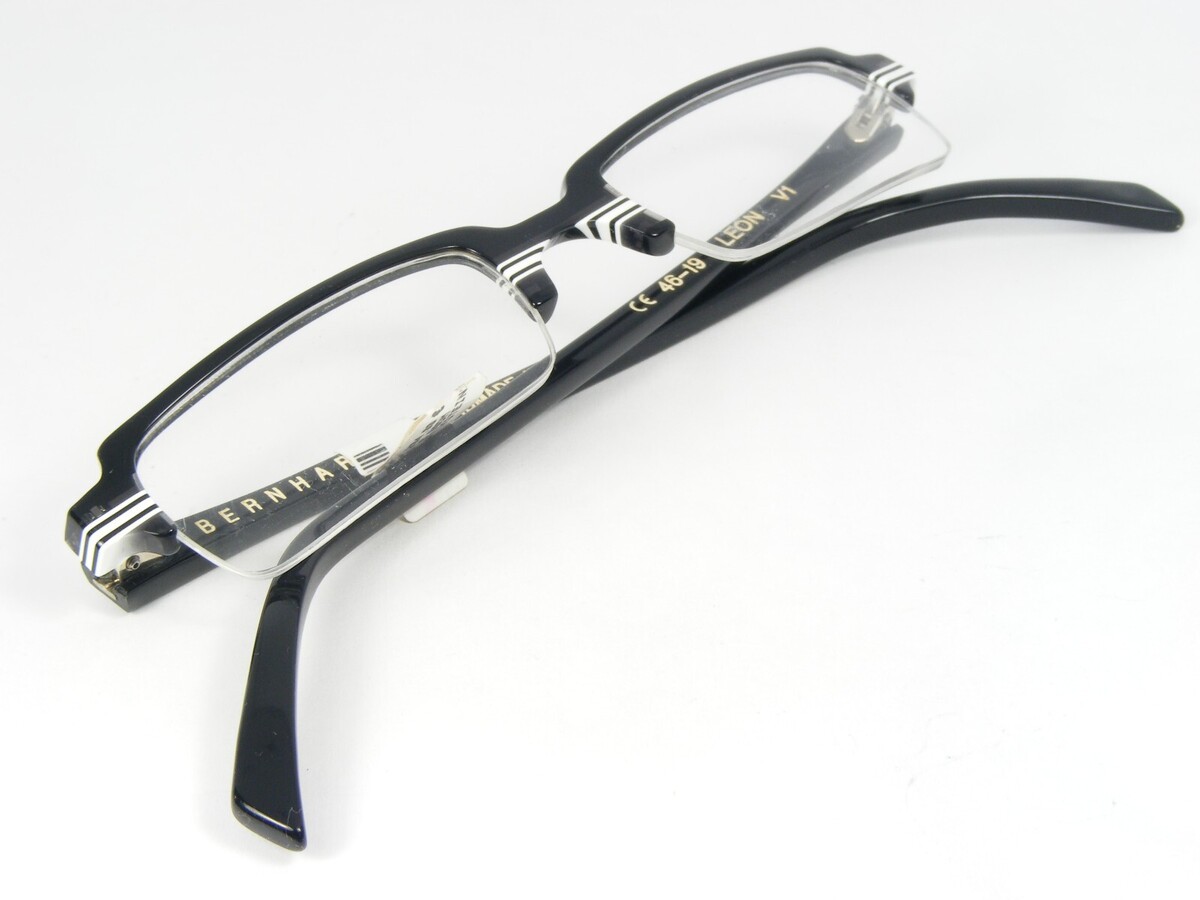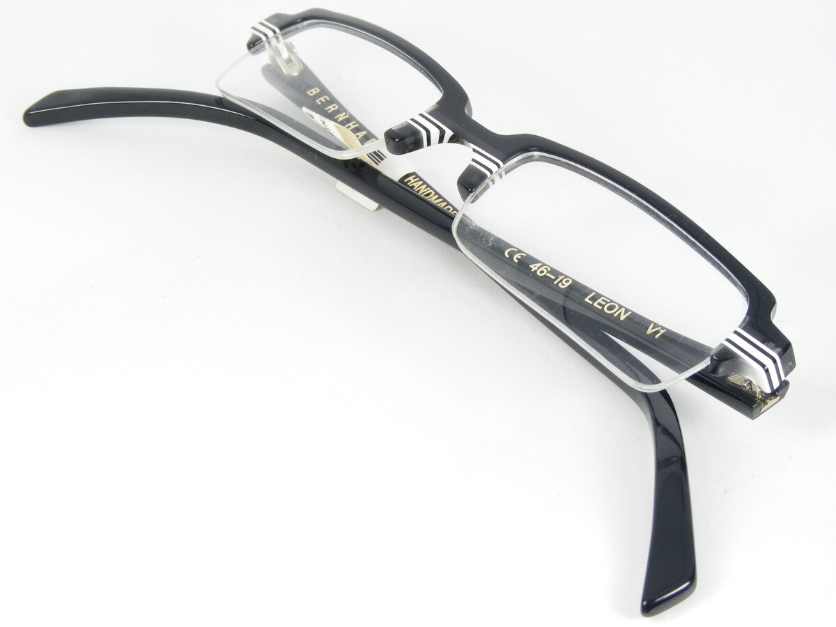 BERNHARD LEON V1 SCHWARZ WEISS GRAU HANDGEFERTIGTE EINZIGARTIGE BRILLE 46-19-148mm. (X758)