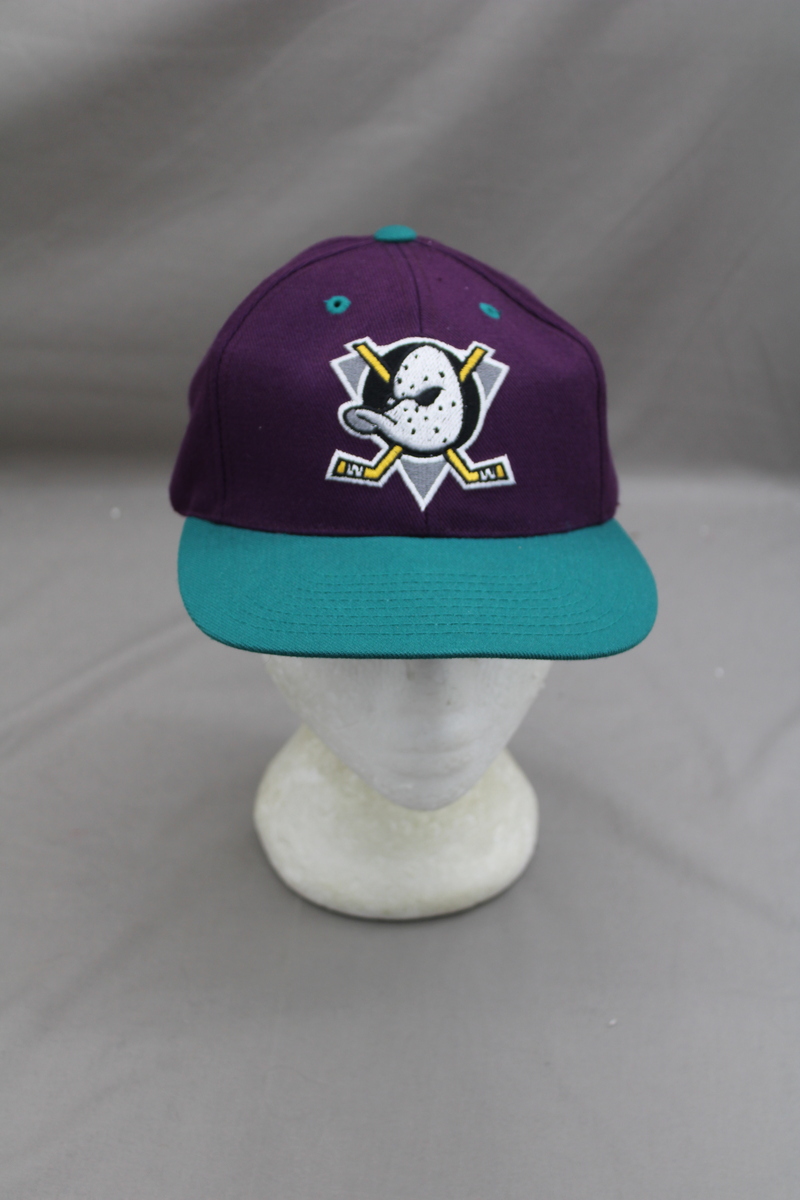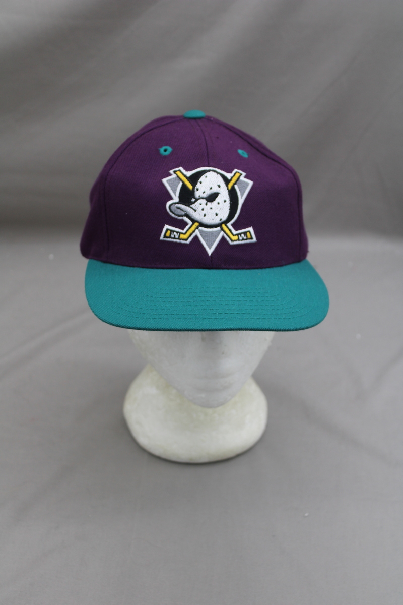 Up for sale is a vintage Anaheim Mighty Ducks hat by Twins. It has a purple body and a green brim. The front of hat has the original Ducks logo stitched into the front of the hat. What a great vintage hat do not miss out on it.