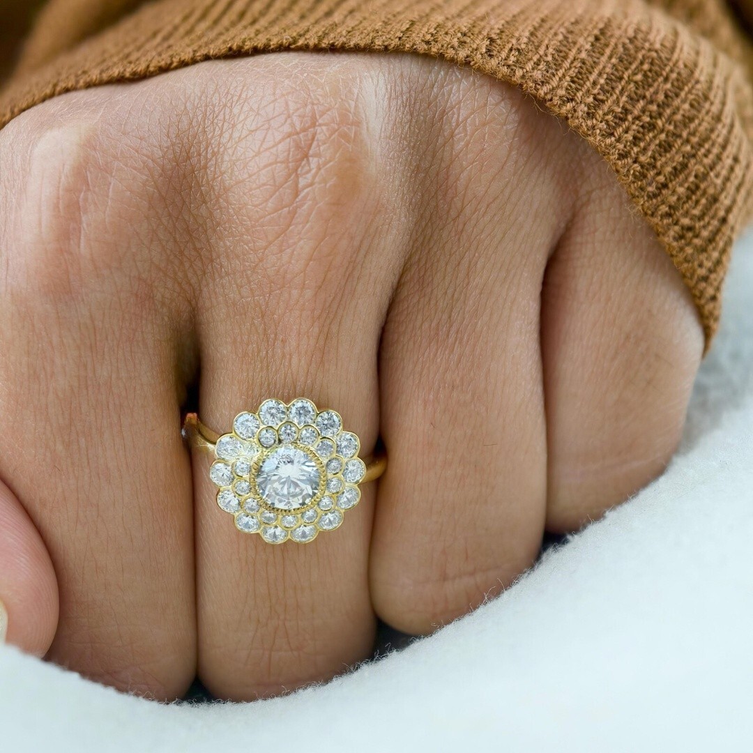 2 Ct Flower Diamond Ring | Nature-Inspired Lab Grown Diamond Ring | Round Cut Flower Engagement Ring | 14K Gold Floral Diamond Ring | IGI Certified Lab Created Diamond Jewelry | Sustainable Diamond Engagement Ring