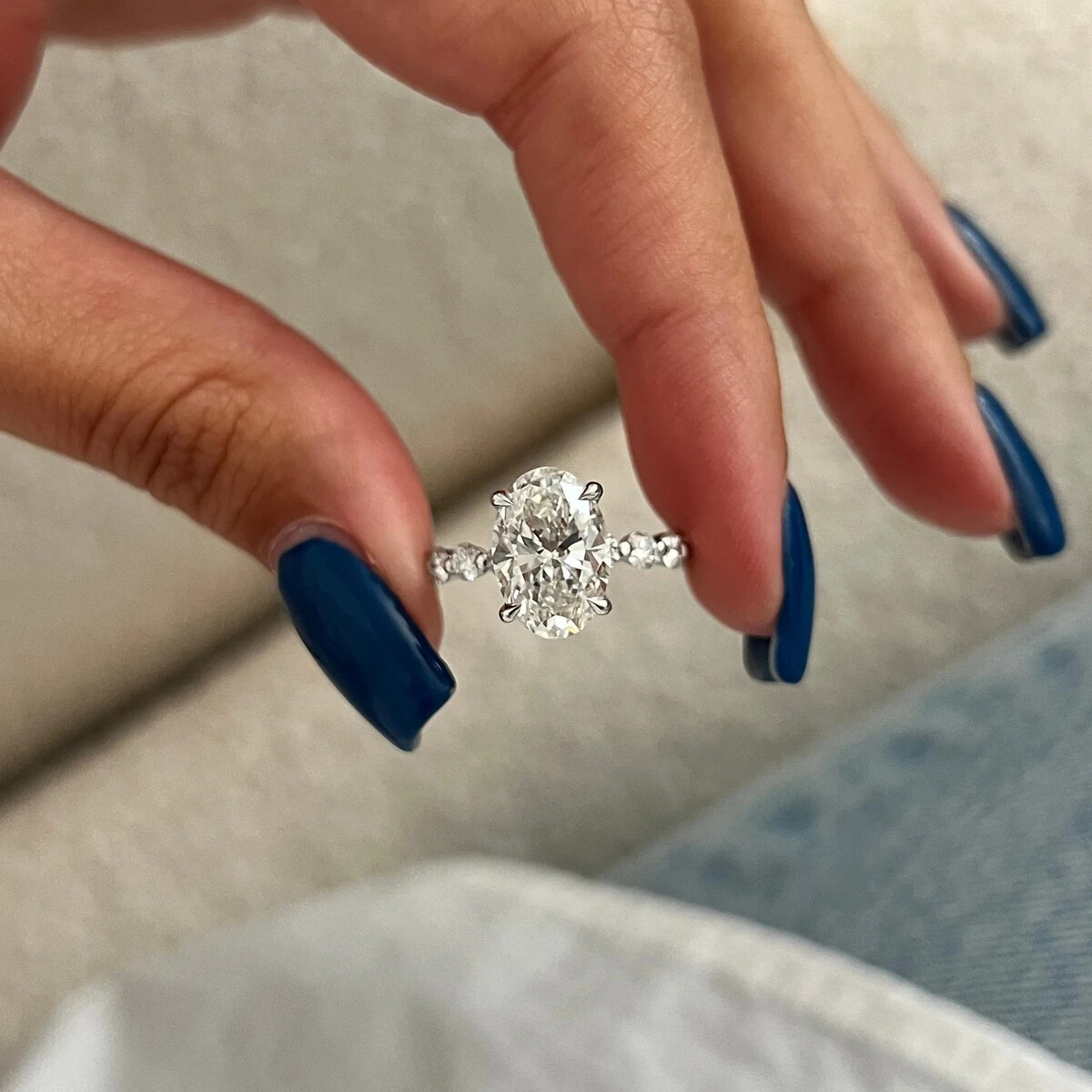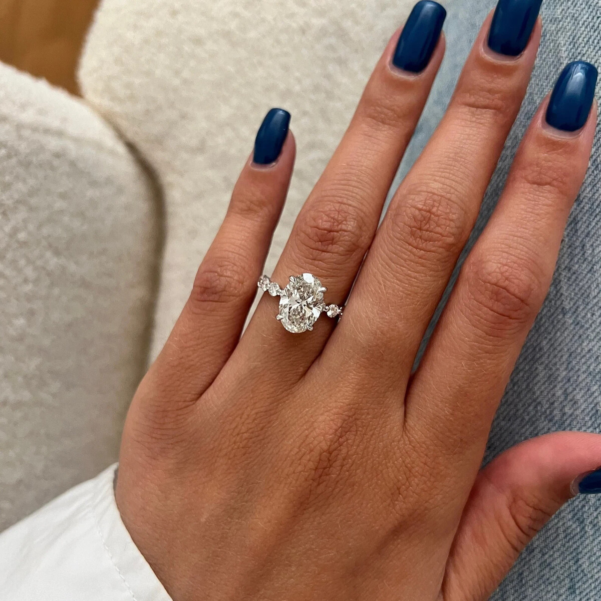 3 Carat Oval Lab Grown Diamond Ring with 0.85 CTW Side Stones | F+ VS1+ | White Gold or Platinum | IGI/GIA Certified