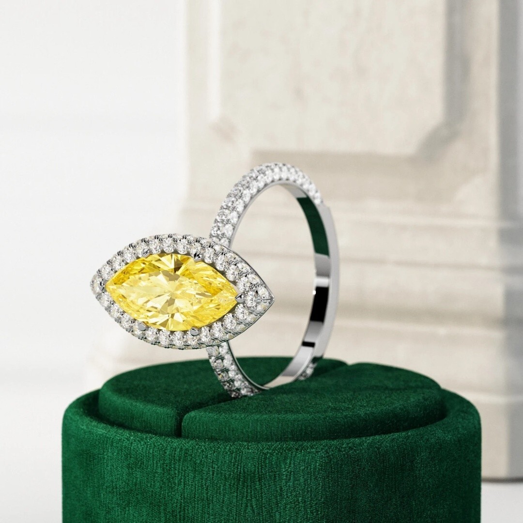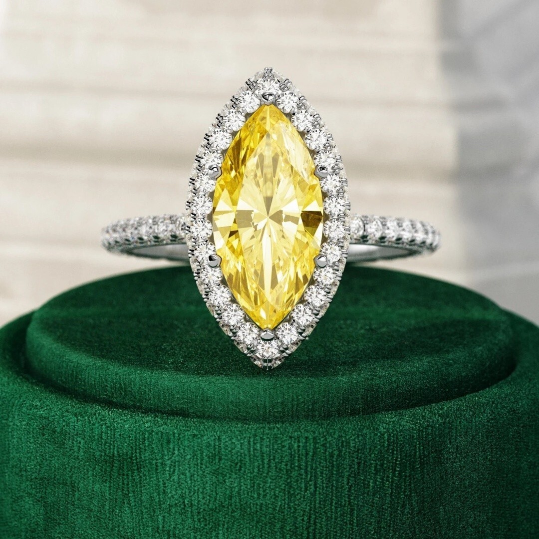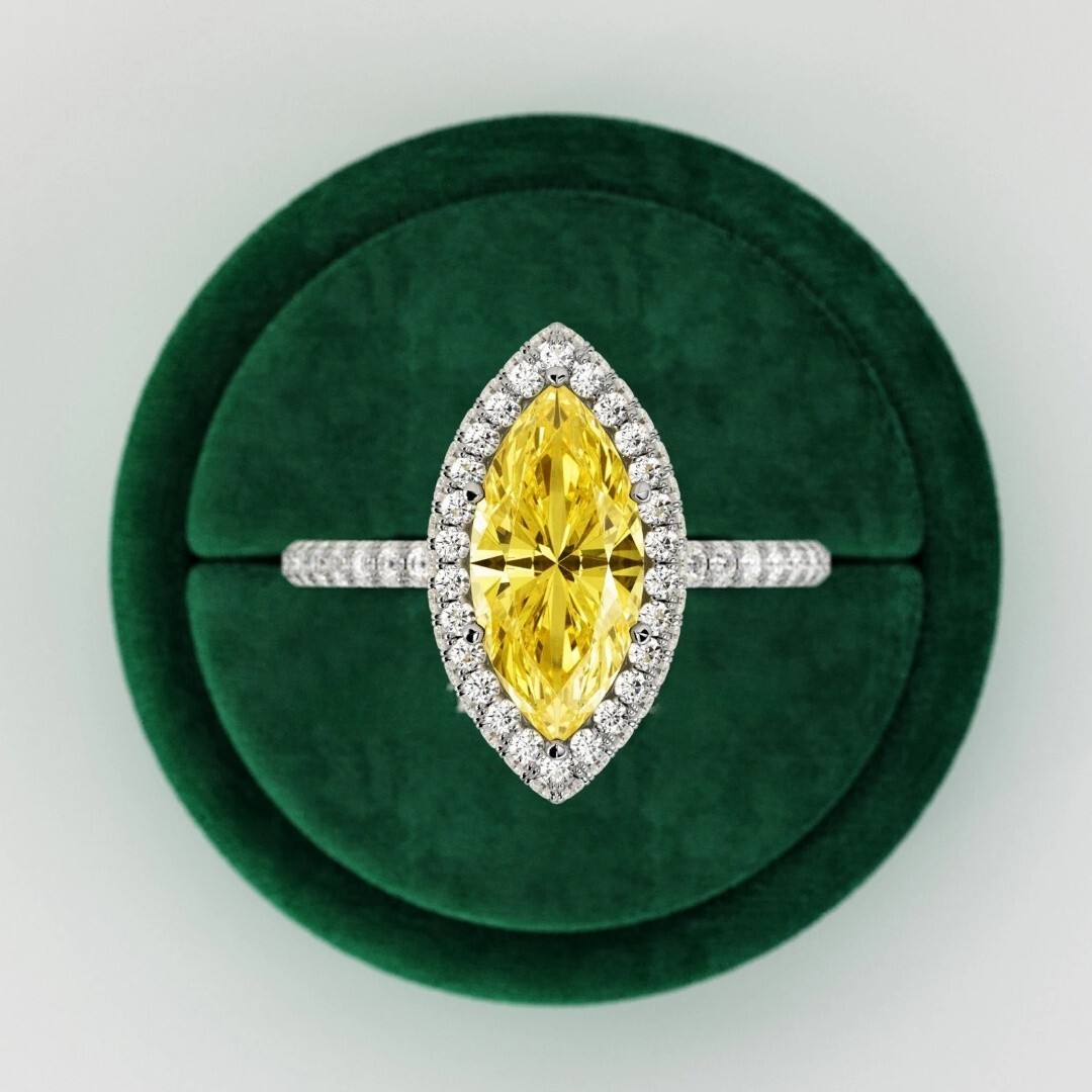1.50 CT ICED OUT Fancy Yellow Lab Grown Diamond Marquise Halo Engagement Ring