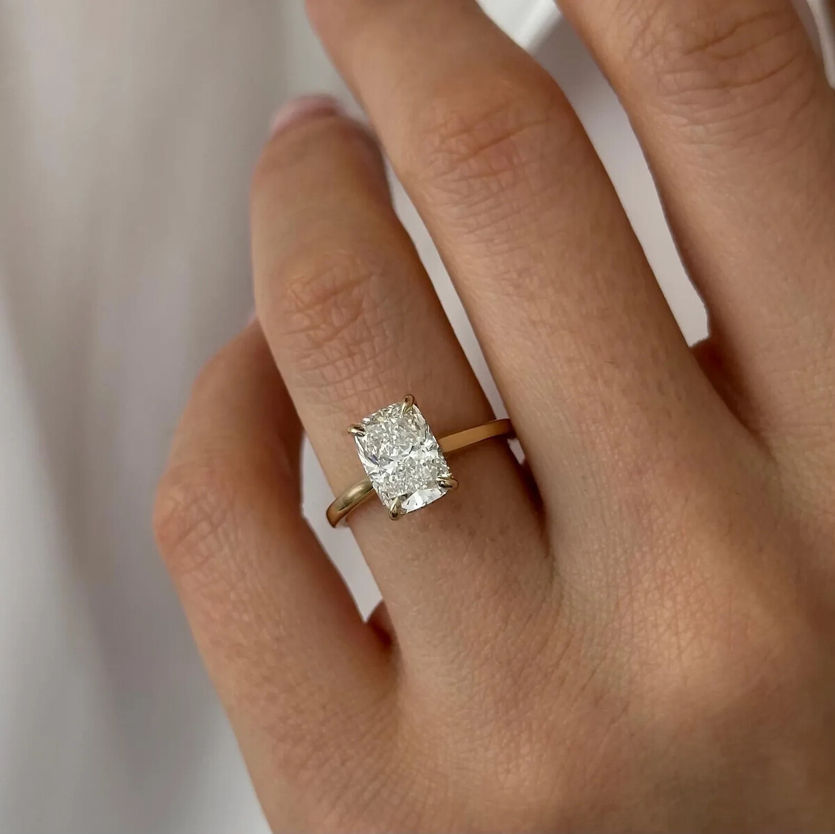 Elevate your elegance with this 2 Carat Elongated Cushion Lab Grown Diamond Ring, designed for modern sophistication and timeless beauty. The centerpiece is a 2 Carat lab-grown diamond in an elongated cushion cut, known for its graceful shape that visually lengthens the finger while offering maximum brilliance.