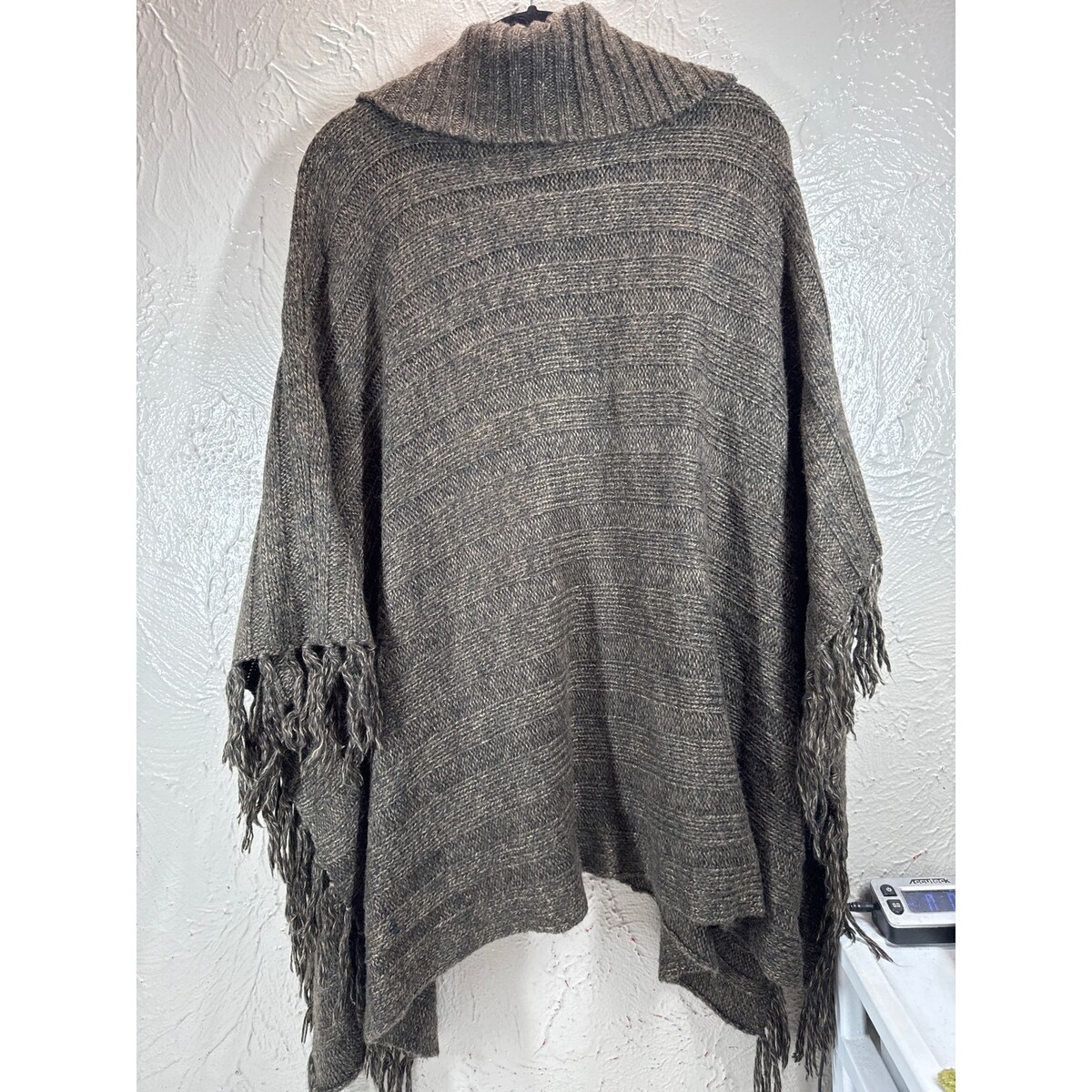 Carolyn Taylor Fringe Hippie Poncho Sweater Brown Button One Size Fits All OS