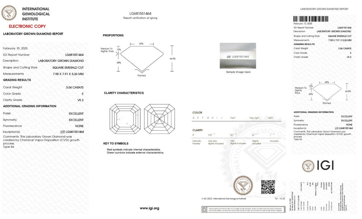 ASSCHER Cut 3.04 Cts E Color VS2 Clarity IGI Certified Lab Grown CVD Diamond
