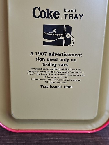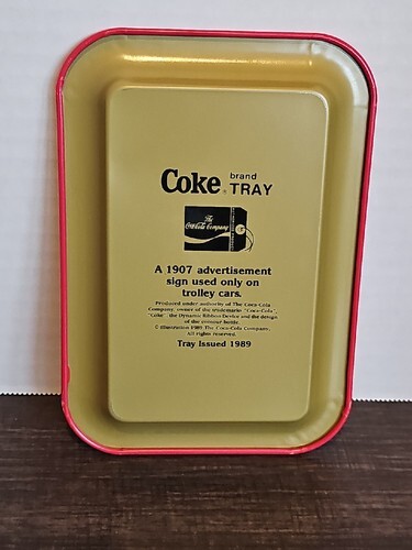 Vintage Very Small Coke Brand Tray Depicting 1907 Trolley Car Advertisement
