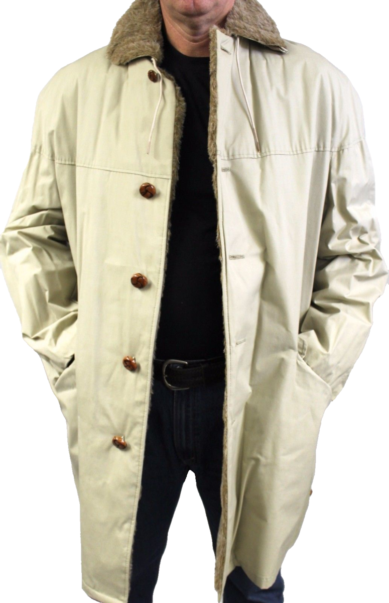 Vintage 70s Marshall Ray NY Men’s Poplin Overcoat Faux Fur Lined NWOT Sz L