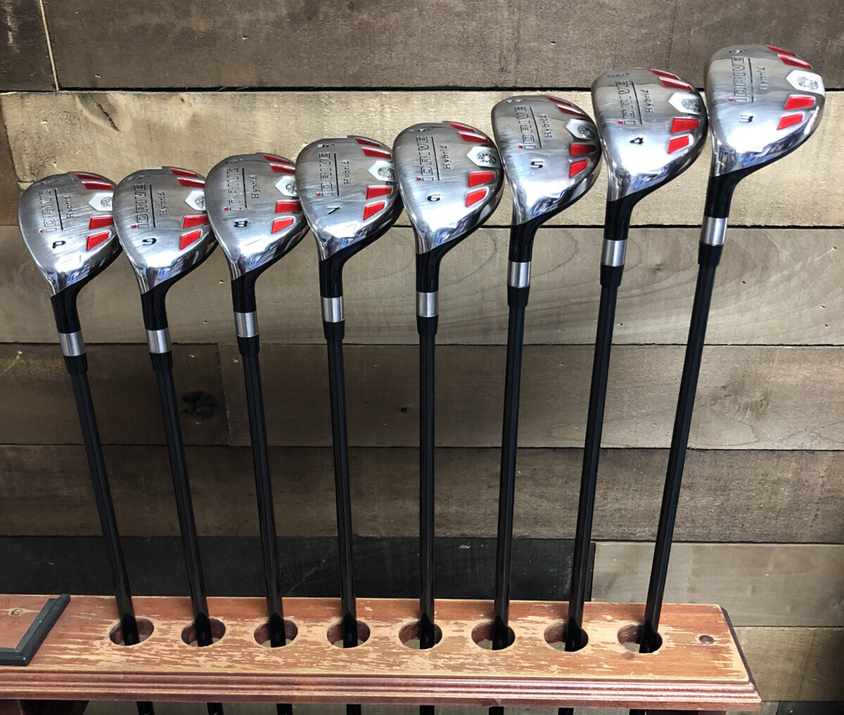 Replace Your Entire difficult to use iron set with the iDrive all hybrid iron set! Improve your Hybrid-Iron game! Benefits of the iDrive Hybrid: -More Weight Positioned Behind The "Sweet Spot" -Deeper Cavity Back Creates A Tighter Shot Dispersion, Which Increases The Accuracy On Off Center Hits. -Aerodynamic Design Creates A Reduction In Drag, Which Leads To Higher Club Head Speeds -Wide To Thin Crown Design Creates A Lower CG To Promote Higher Launch Angle For More Distance - Lightweight Premium Graphite Shafts Promotes Faster Swing Speed For Greater Distance. Your Custom Made iDrive Golf Hybrid Is Assembled By Hand In Riverside, CA, USA And Delivered Direct To Your Door.*