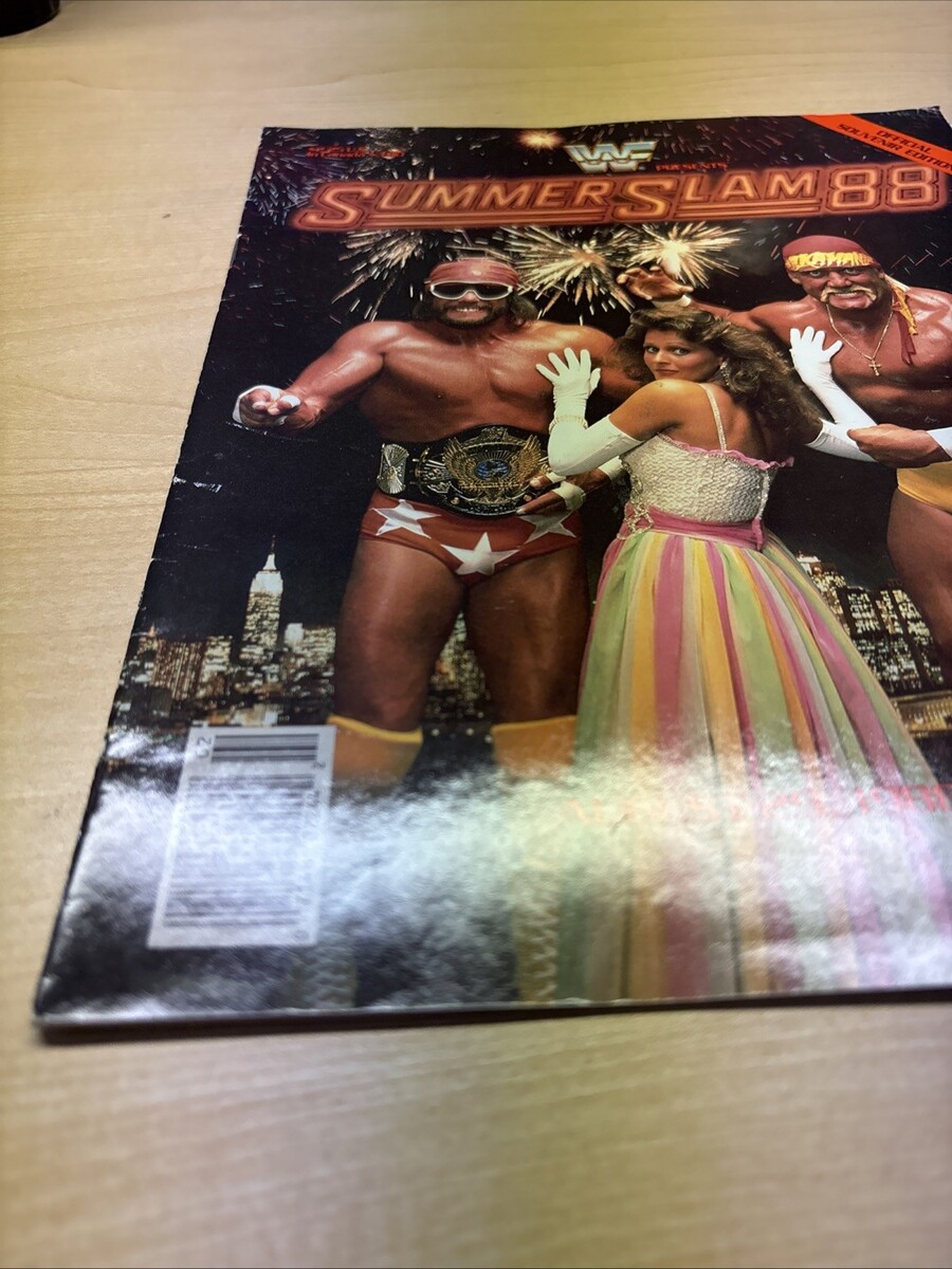 WWF Program Summer Slam 88 Randy Savage Hulk Hogan Ted DiBiase Andre the Giant. Item is used. Check pictures for condition as I am not a greater and can?t tell you what this item could grade at. does have some corner damage and sticker residue on front.