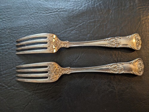 Lote De 2 Gorham Regent Patrón Plata Placa 7 IN 1902 Cena Tenedor Monograma