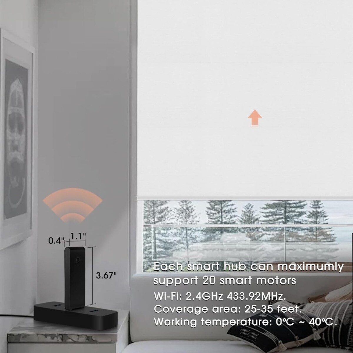 Smart Hub for Motorized Blinds Compatible with Alexa, Google Assistant, SmartThings, USB-Aport Integrated, Control up to 20 Motors, Wi-Fi 2.4GHz to Sub-1G 433MHZ, Black